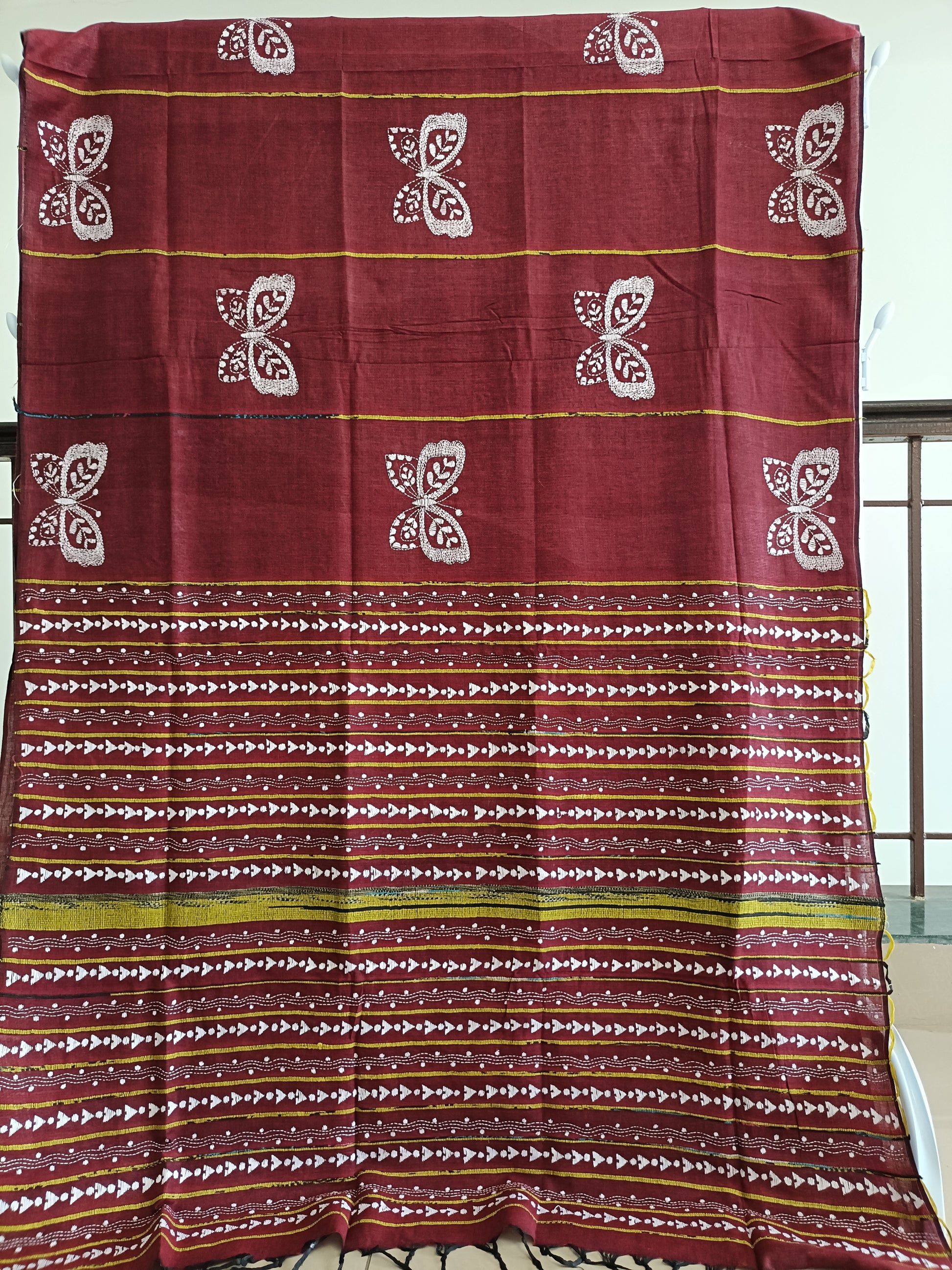 Pure Handmade Khesh Cotton Saree with Kantha Stitch