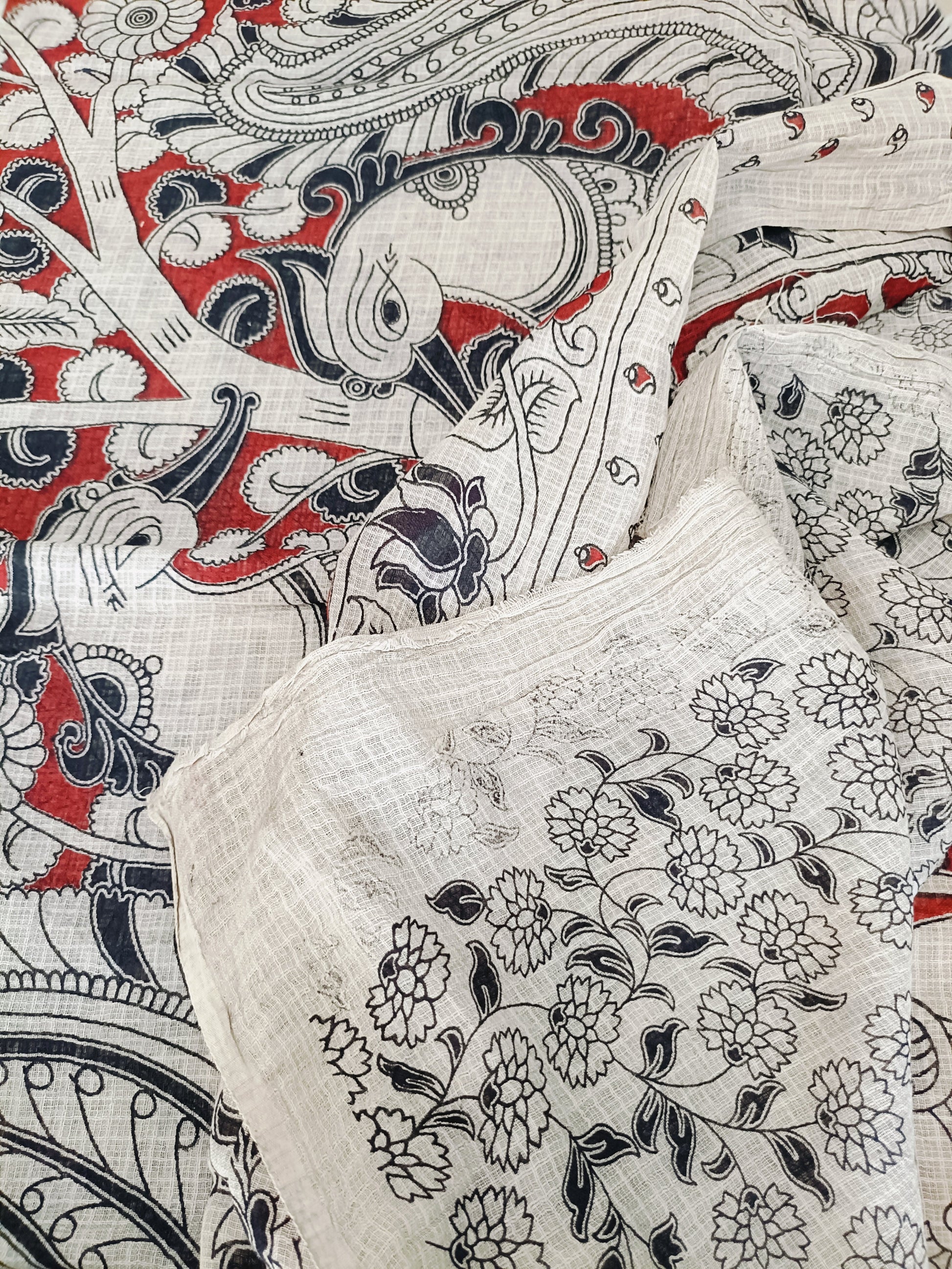 Pure Kota Doria Handloom Cotton Saree with Hand-Printed Kalamkari, Crafted Using Natural & Organic
