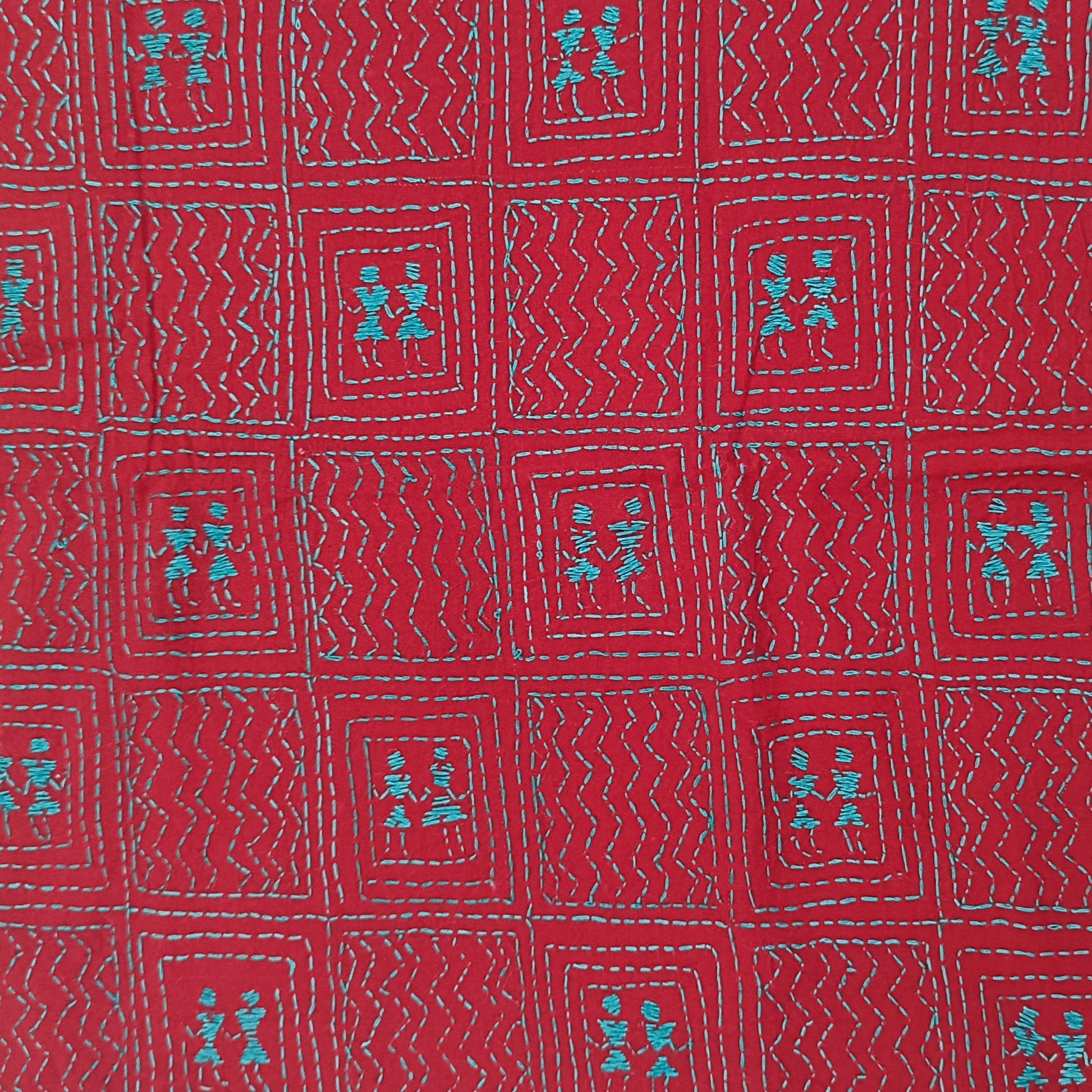 1 मीटर प्री-कट कॉटन ब्लाउज फ़ैब्रिक, पूरे में हस्तनिर्मित कांथा सिलाई कढ़ाई के साथ।