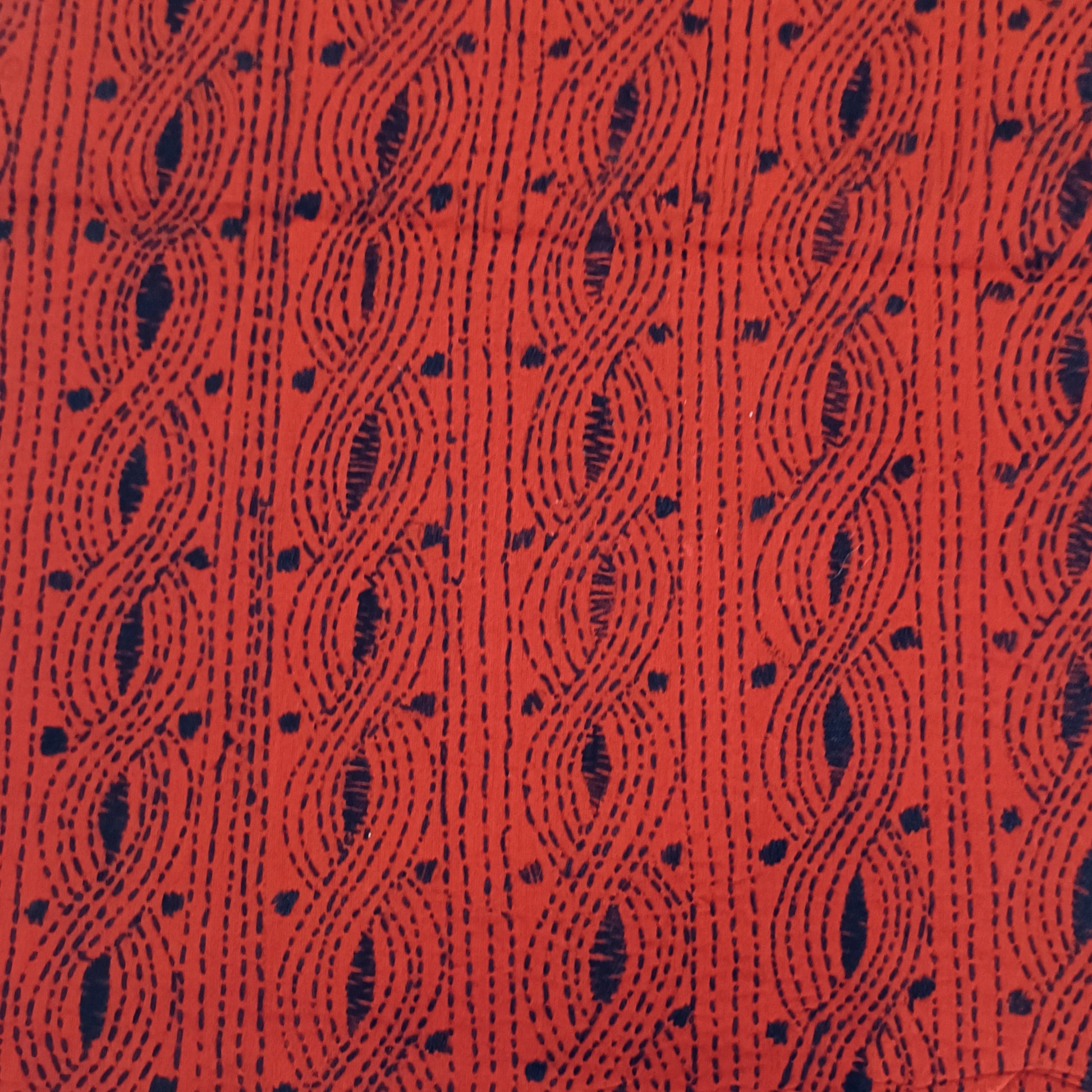 1 मीटर प्री-कट कॉटन ब्लाउज फ़ैब्रिक, पूरे में हस्तनिर्मित कांथा सिलाई कढ़ाई के साथ।