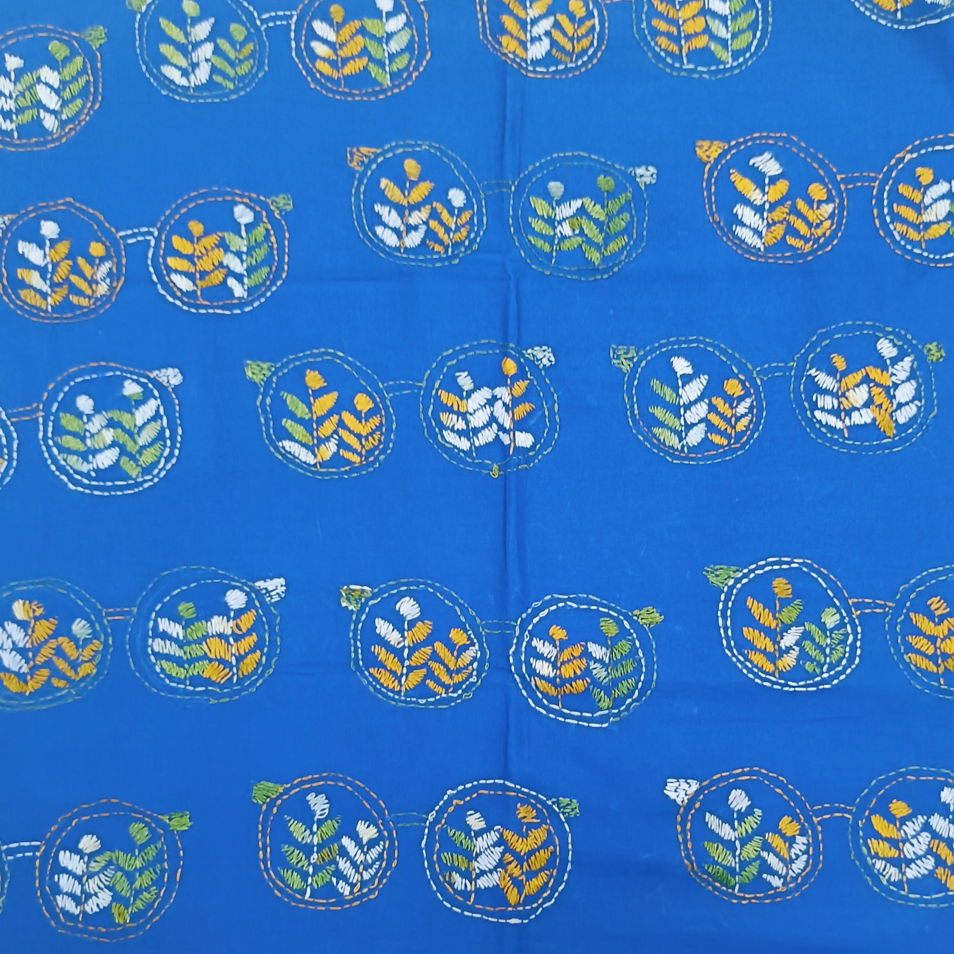 1 मीटर प्री-कट कॉटन ब्लाउज फ़ैब्रिक, पूरे में हस्तनिर्मित कांथा सिलाई कढ़ाई के साथ।
