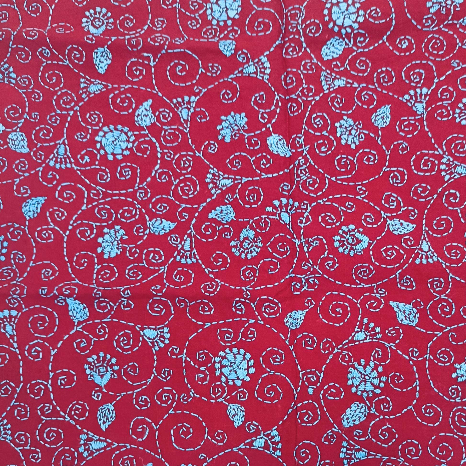 1 मीटर प्री-कट कॉटन ब्लाउज फ़ैब्रिक, पूरे में हस्तनिर्मित कांथा सिलाई कढ़ाई के साथ।