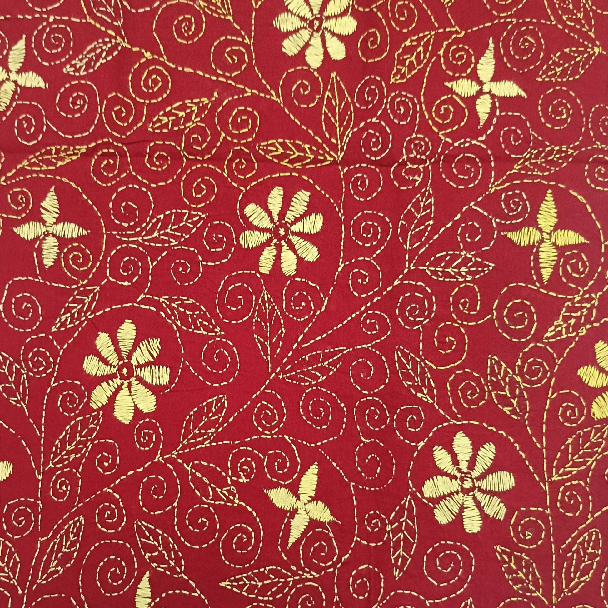 1 मीटर प्री-कट कॉटन ब्लाउज फ़ैब्रिक, पूरे में हस्तनिर्मित कांथा सिलाई कढ़ाई के साथ।