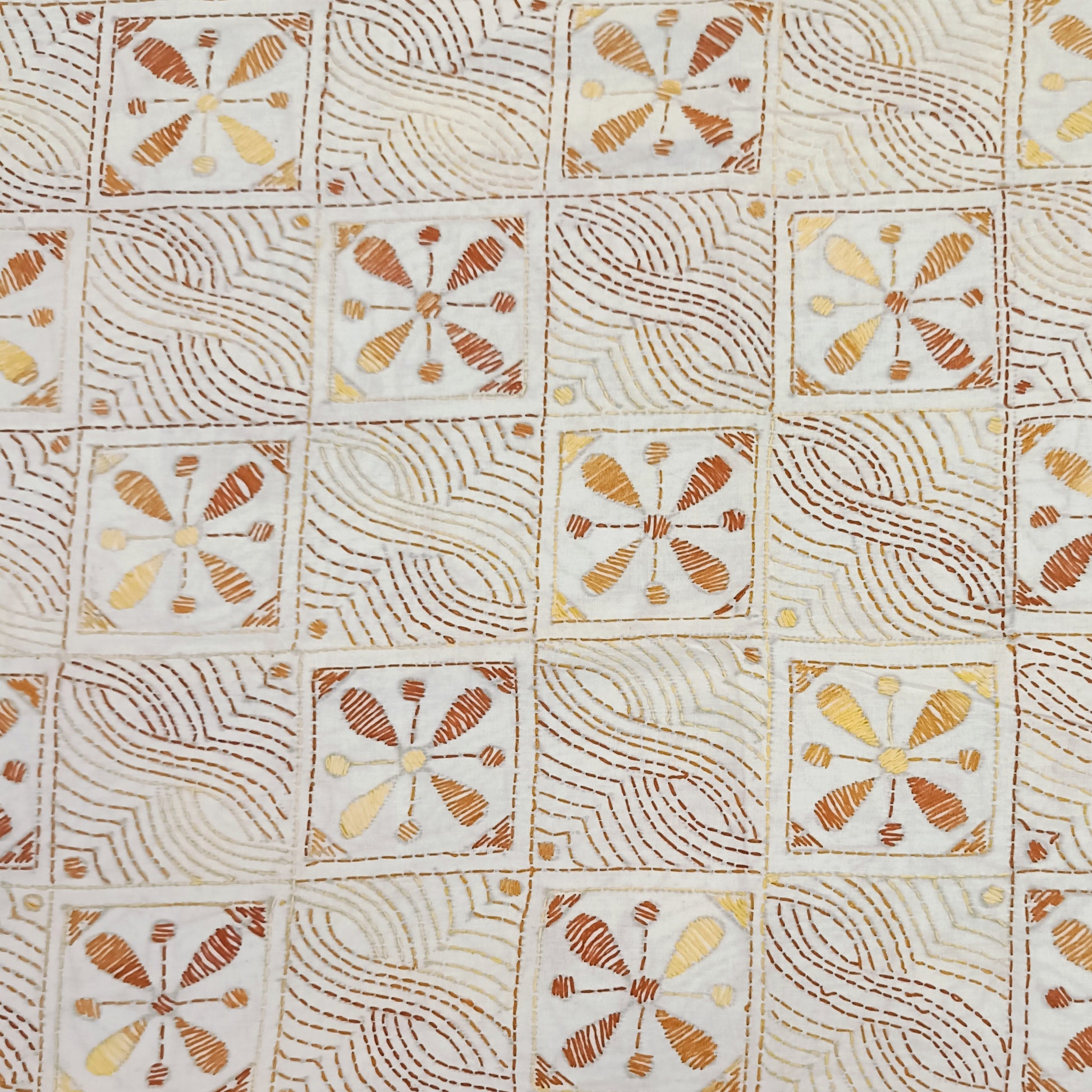 1 मीटर प्री-कट कॉटन ब्लाउज फ़ैब्रिक, पूरे में हस्तनिर्मित कांथा सिलाई कढ़ाई के साथ।