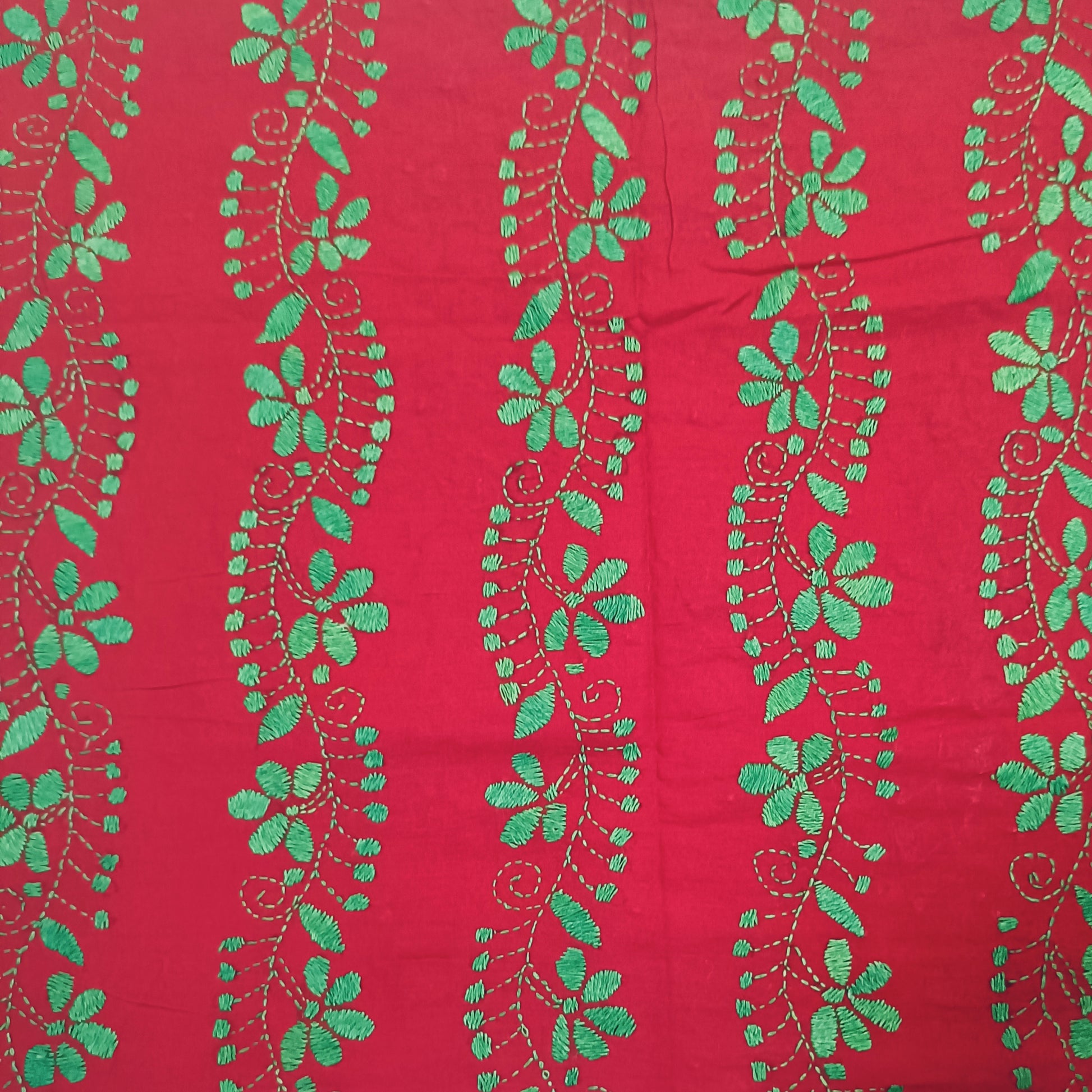 1 मीटर प्री-कट कॉटन ब्लाउज फ़ैब्रिक, पूरे में हस्तनिर्मित कांथा सिलाई कढ़ाई के साथ।