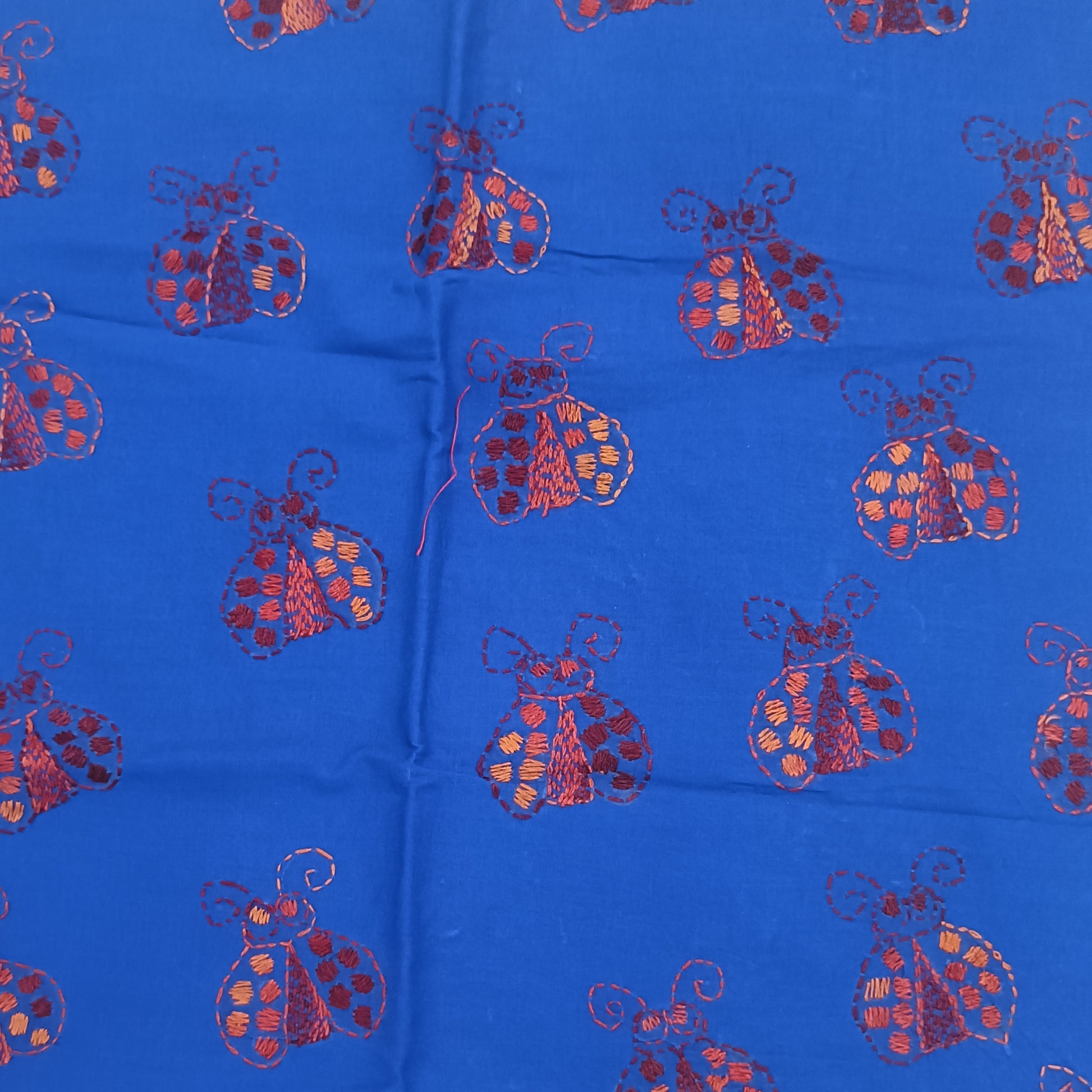 1 मीटर प्री-कट कॉटन ब्लाउज फ़ैब्रिक, पूरे में हस्तनिर्मित कांथा सिलाई कढ़ाई के साथ।