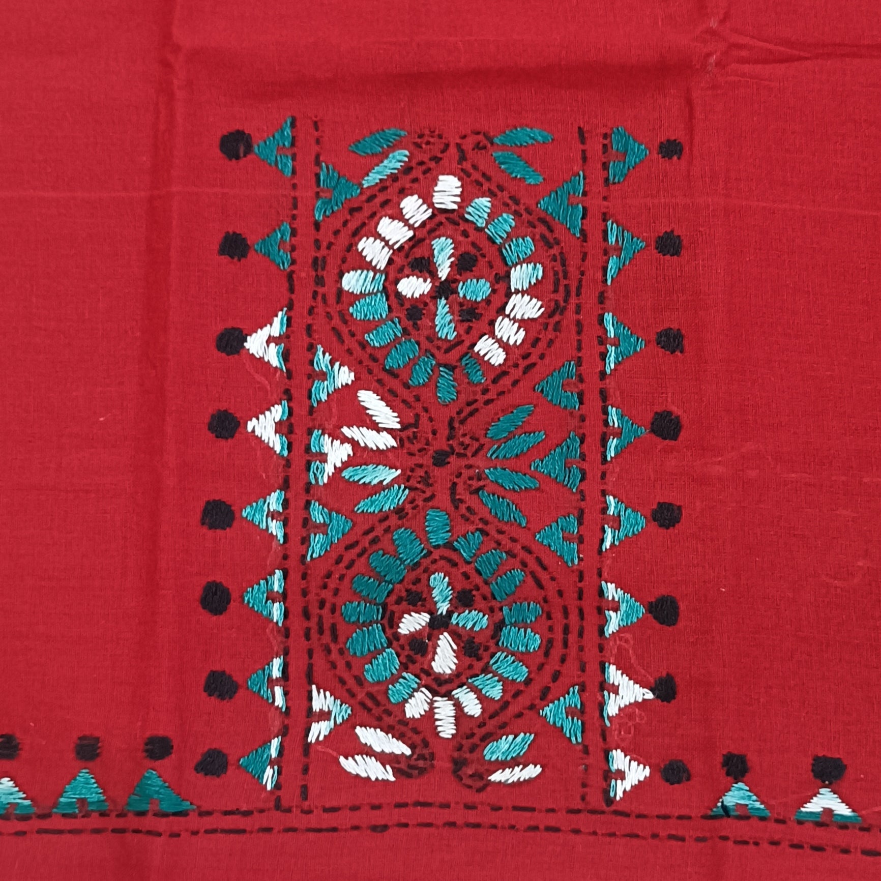 Made from 100% pure cotton, each piece features Kantha embroidery on one half, leaving the other half plain—perfect for traditional blouses, patchwork, or unique DIY designs.