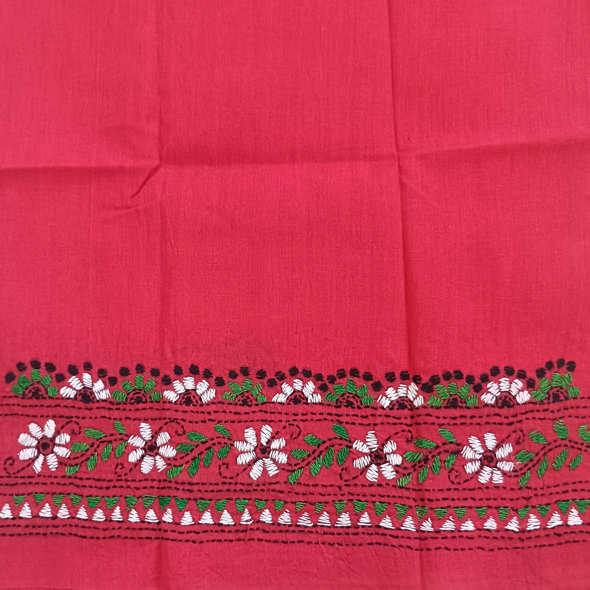 Experience the rich legacy of Bengal with this beautifully handcrafted Kantha Stitch Cotton Blouse Fabric.