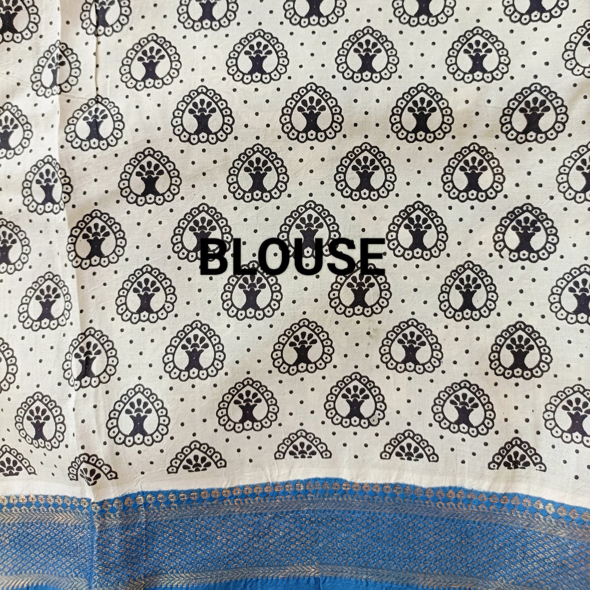 Step into timeless elegance with this Cotton Silk Saree adorned with screen-printed motifs in Kalamkari style. Woven in soft, breathable cotton silk, it features organic, naturally dyed colors and a subtle Zari border that adds a touch of regal shimmer. The saree comes with a contrast blouse piece, perfectly complementing the flowing peacock-inspired hand-printed design.