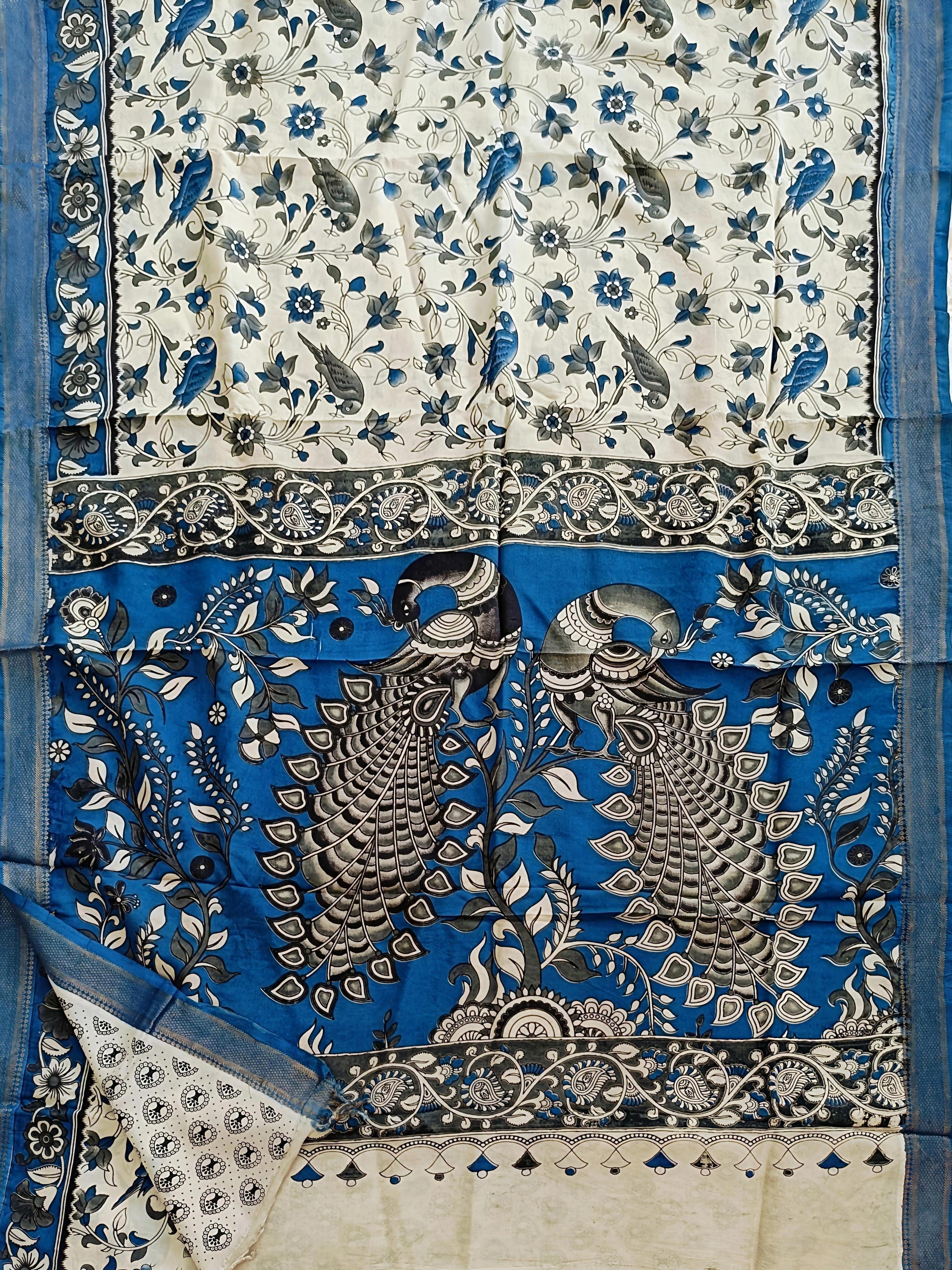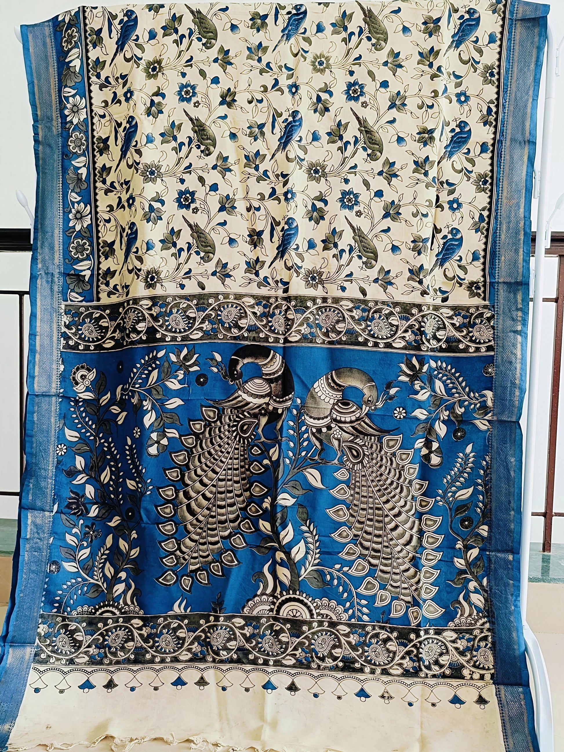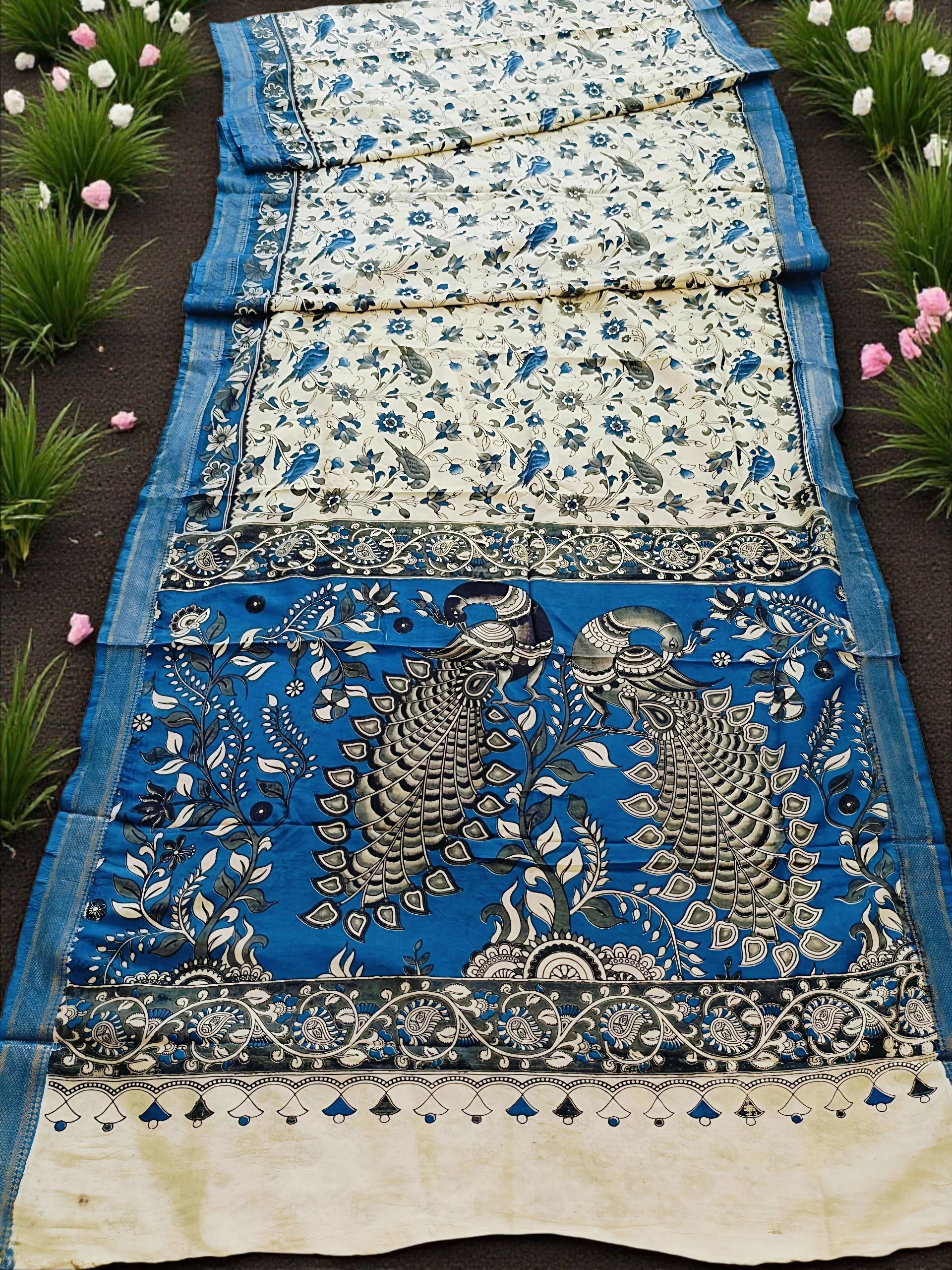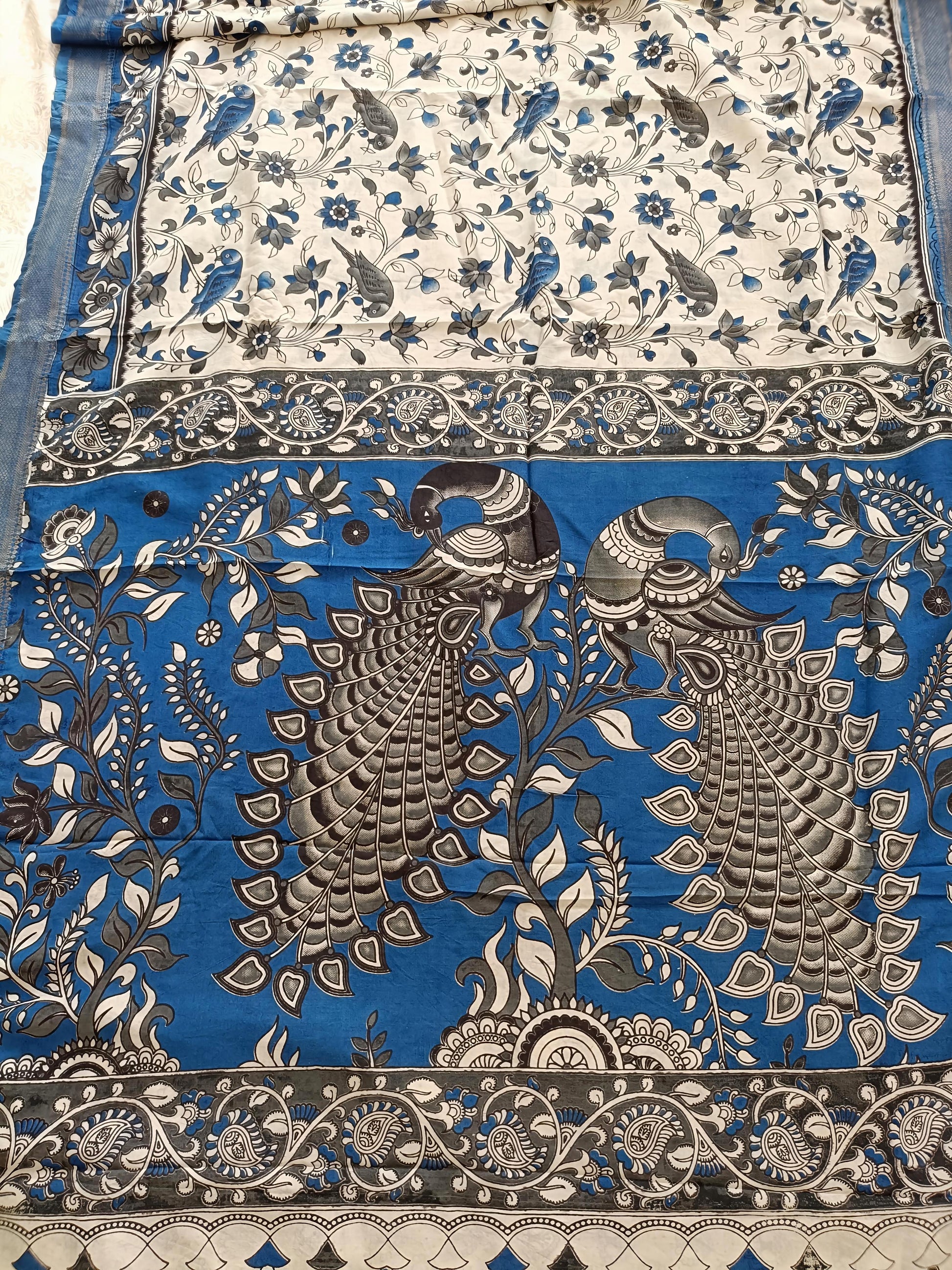 Kalamkari Prints Cotton Silk Saree with Contrast blouse.