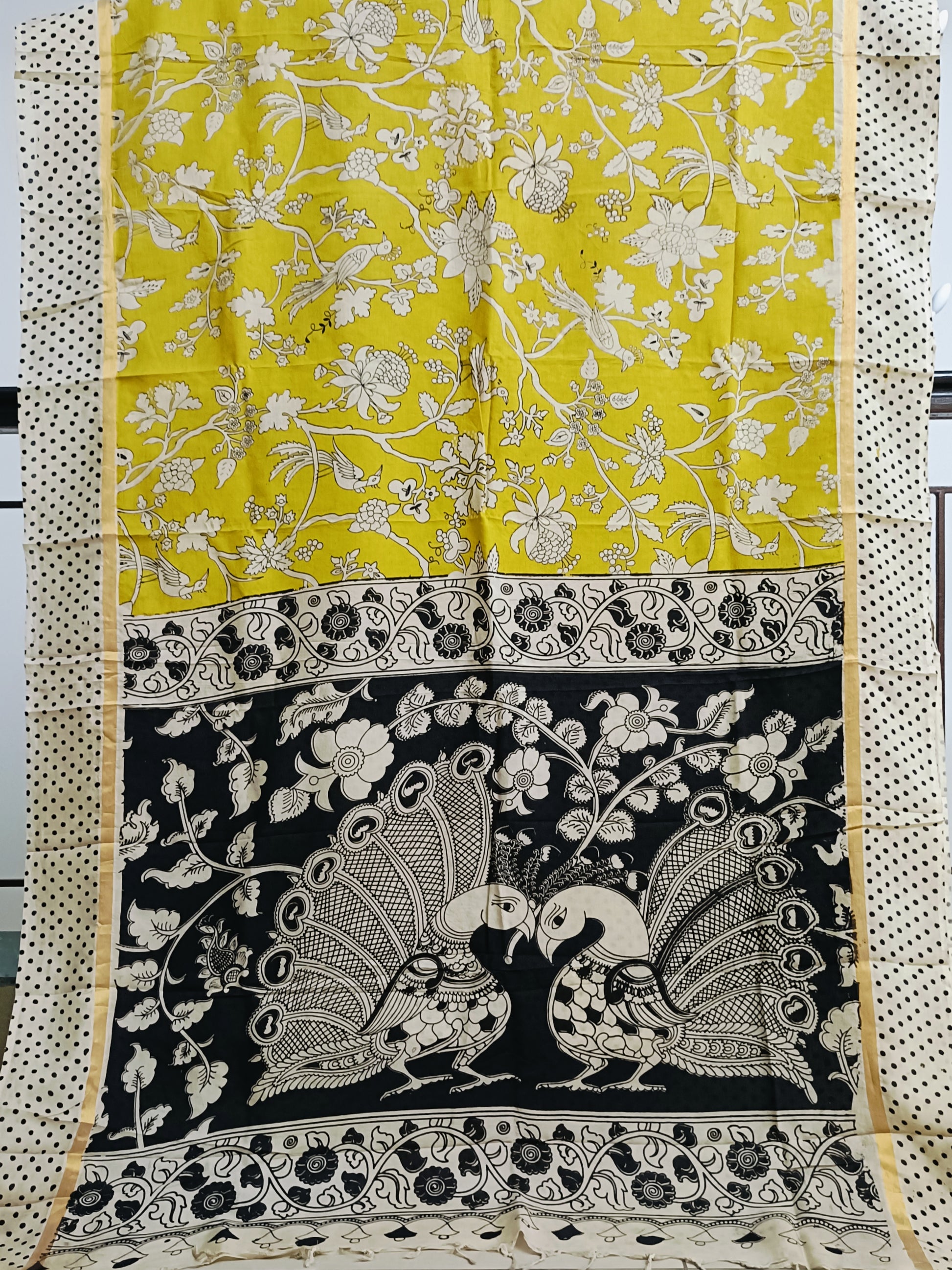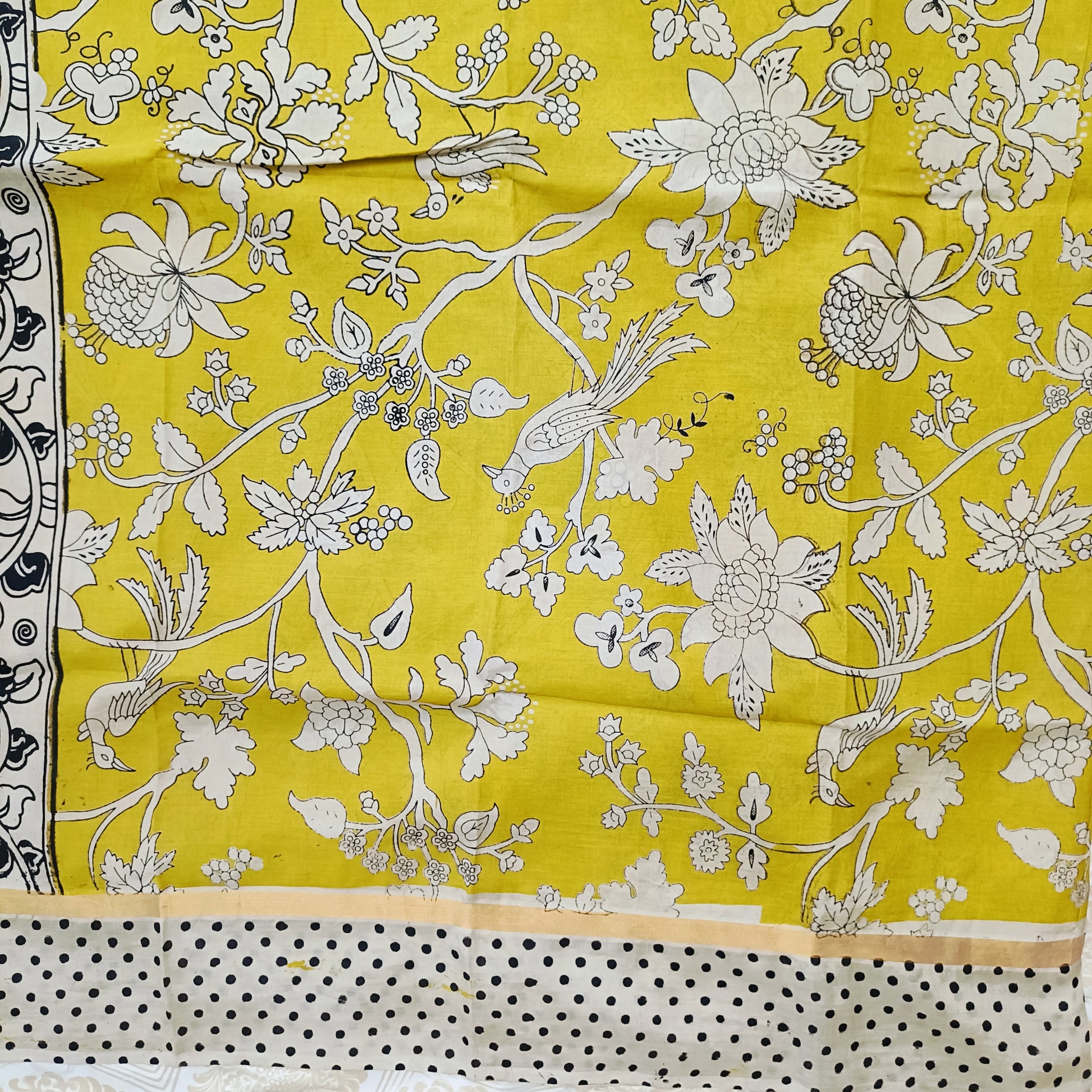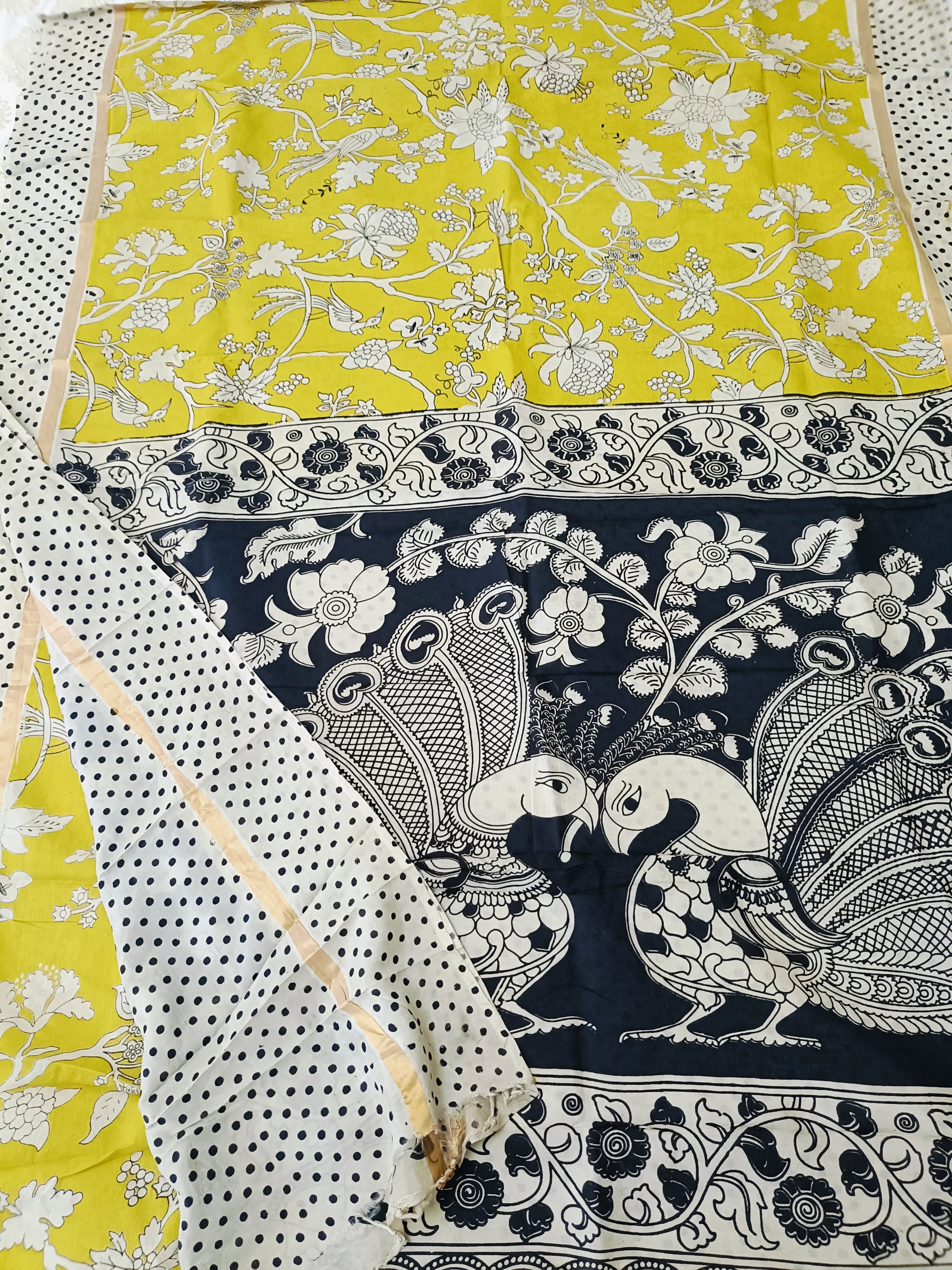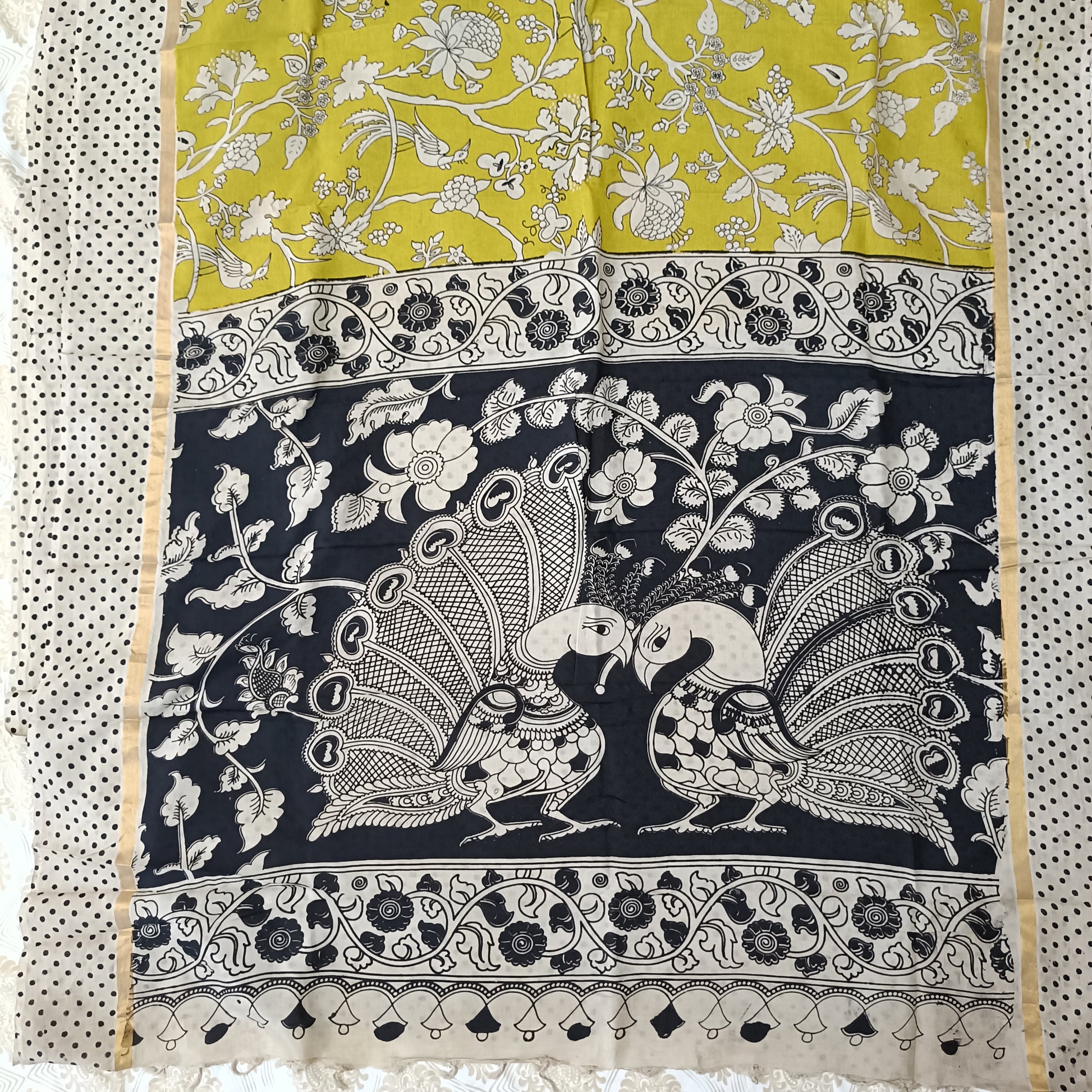 Kalamkari Prints Cotton Silk Saree with Contrast blouse.