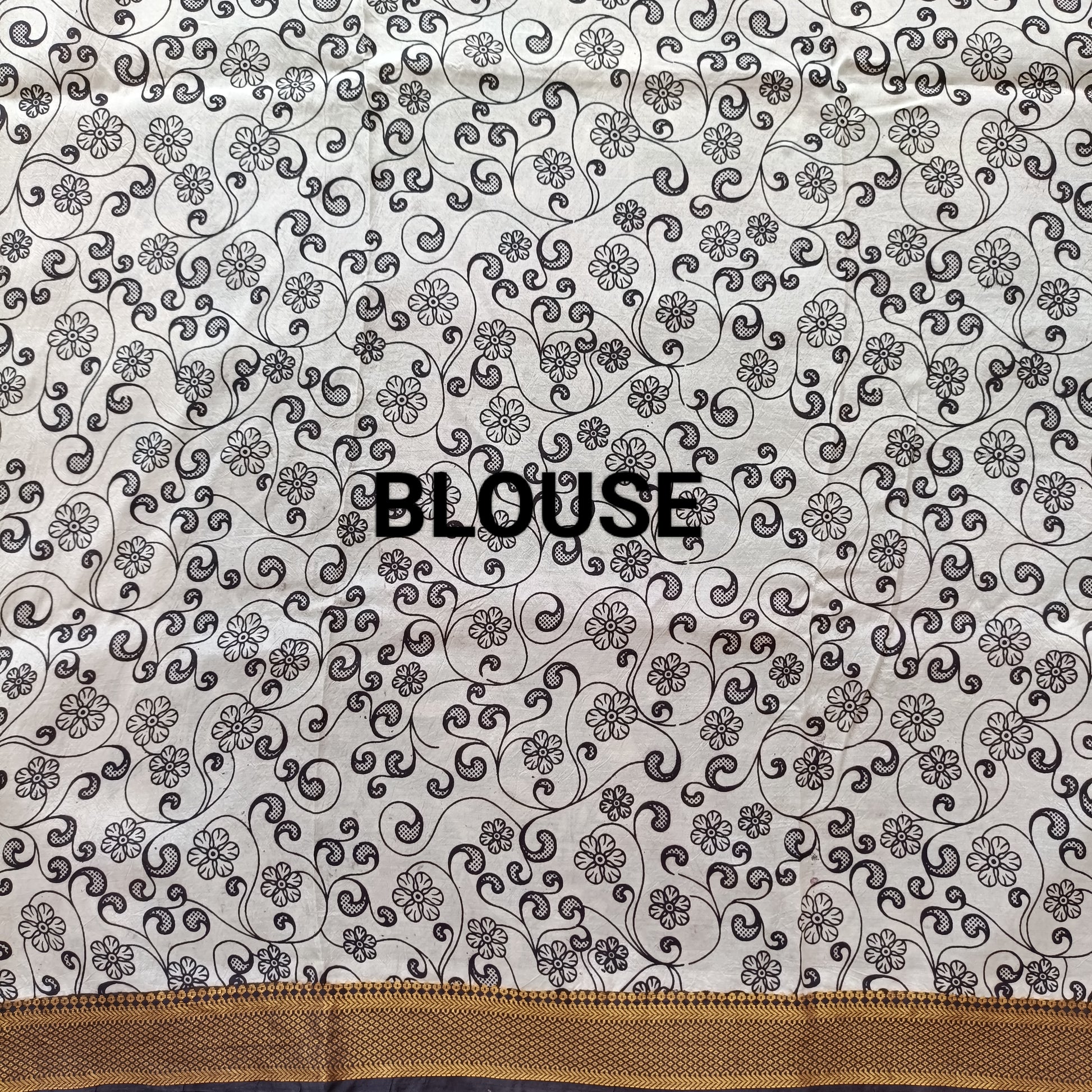 🧵 Fabric: Pure Bangalore Silk | 🎨 Work: Hand-printed Kalamkari | 📏 Saree Length: 6.5 m | 👚 Blouse: Up to 1 m | 📐 Width: 46"