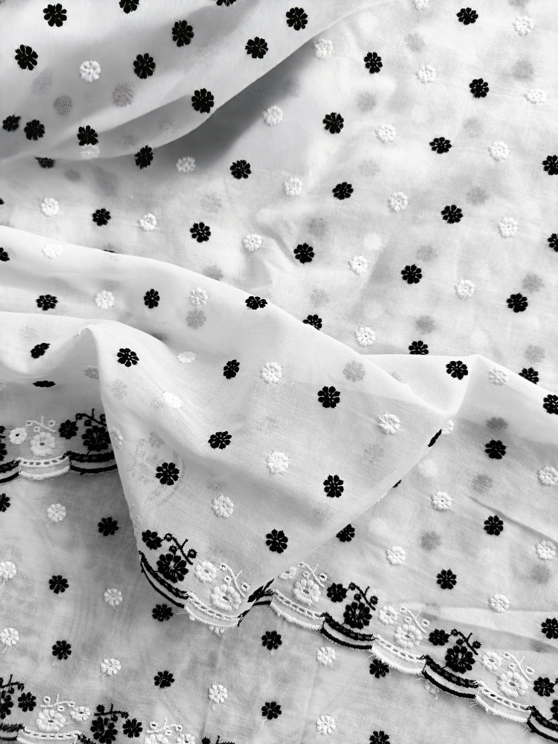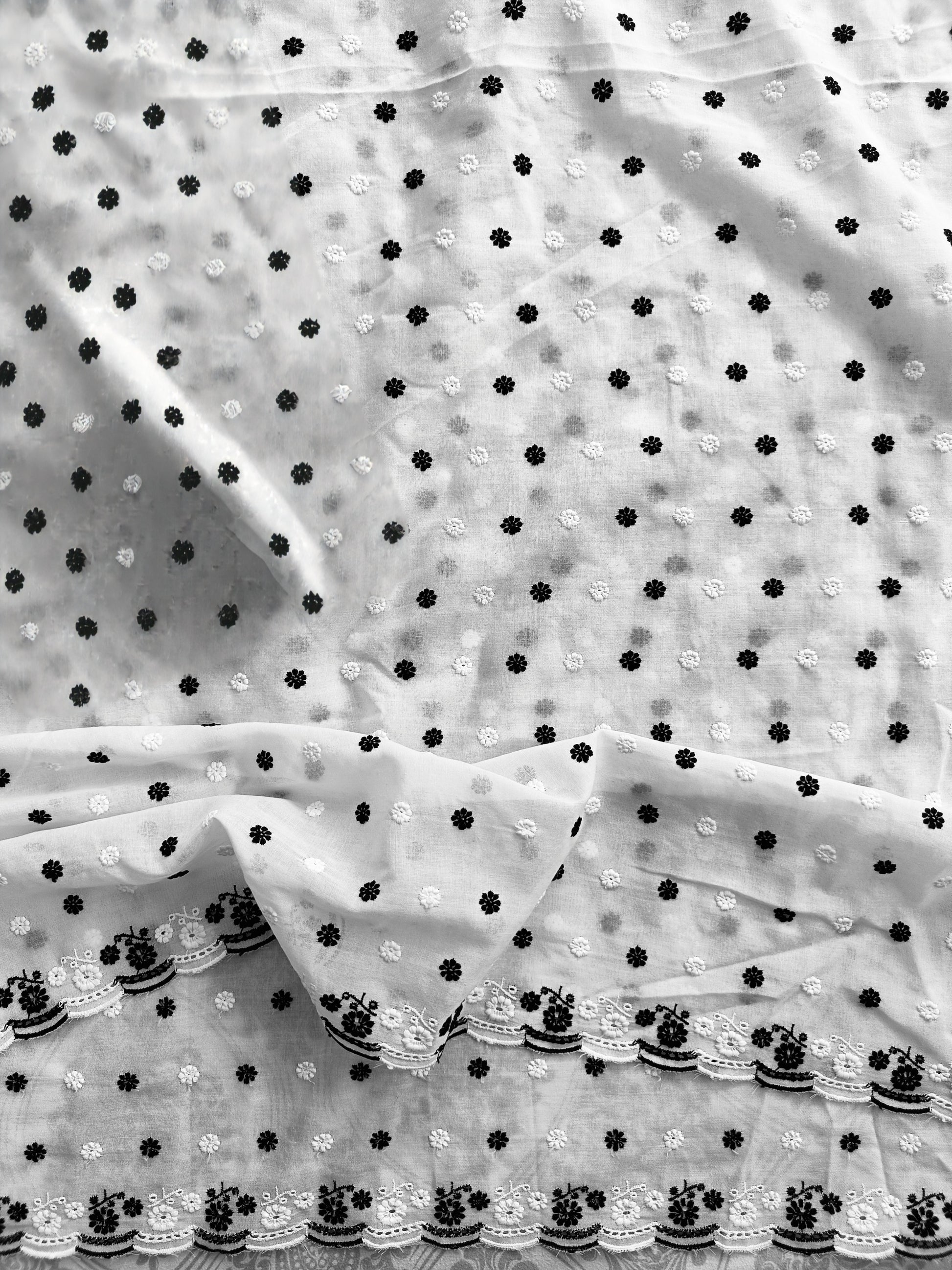 Supersoft Kurta fabric in trending colours, featuring delicate machine embroidery and a scalloped border on one side.