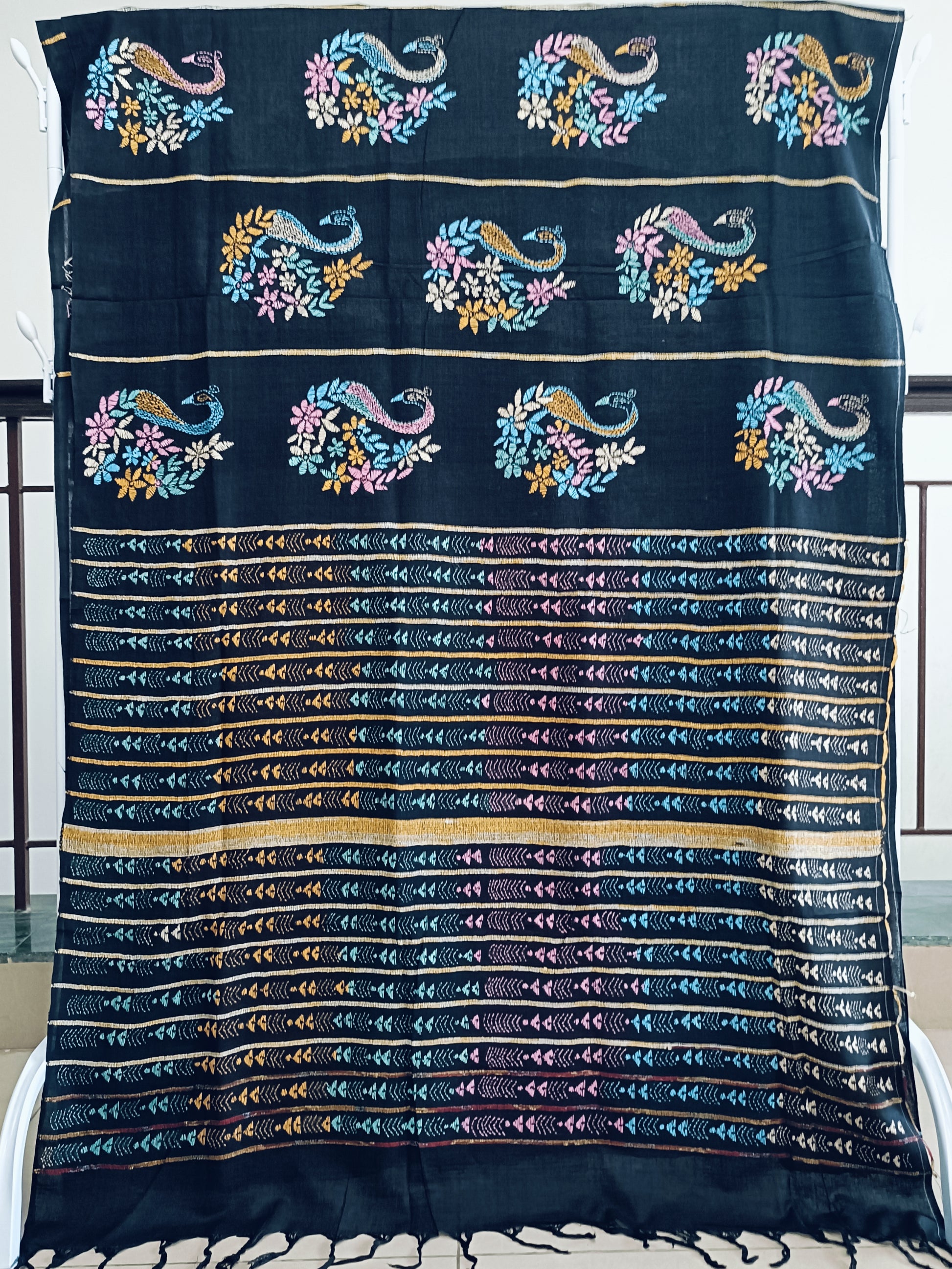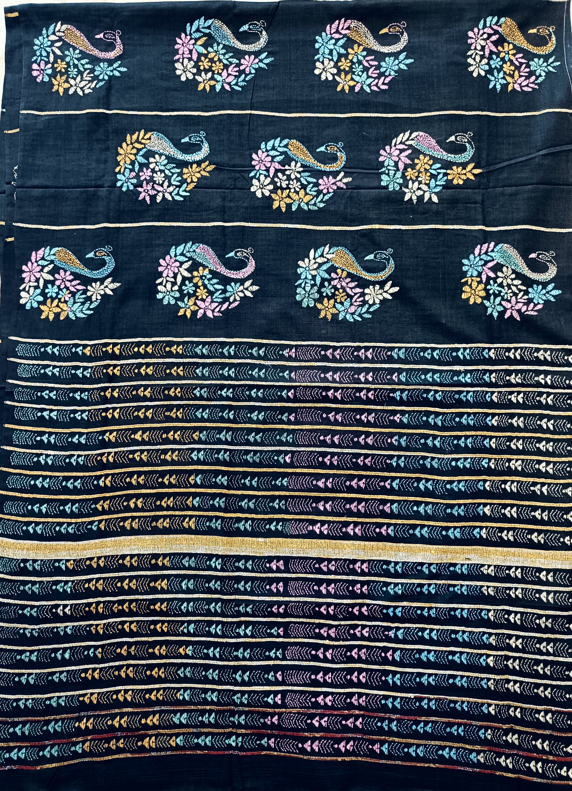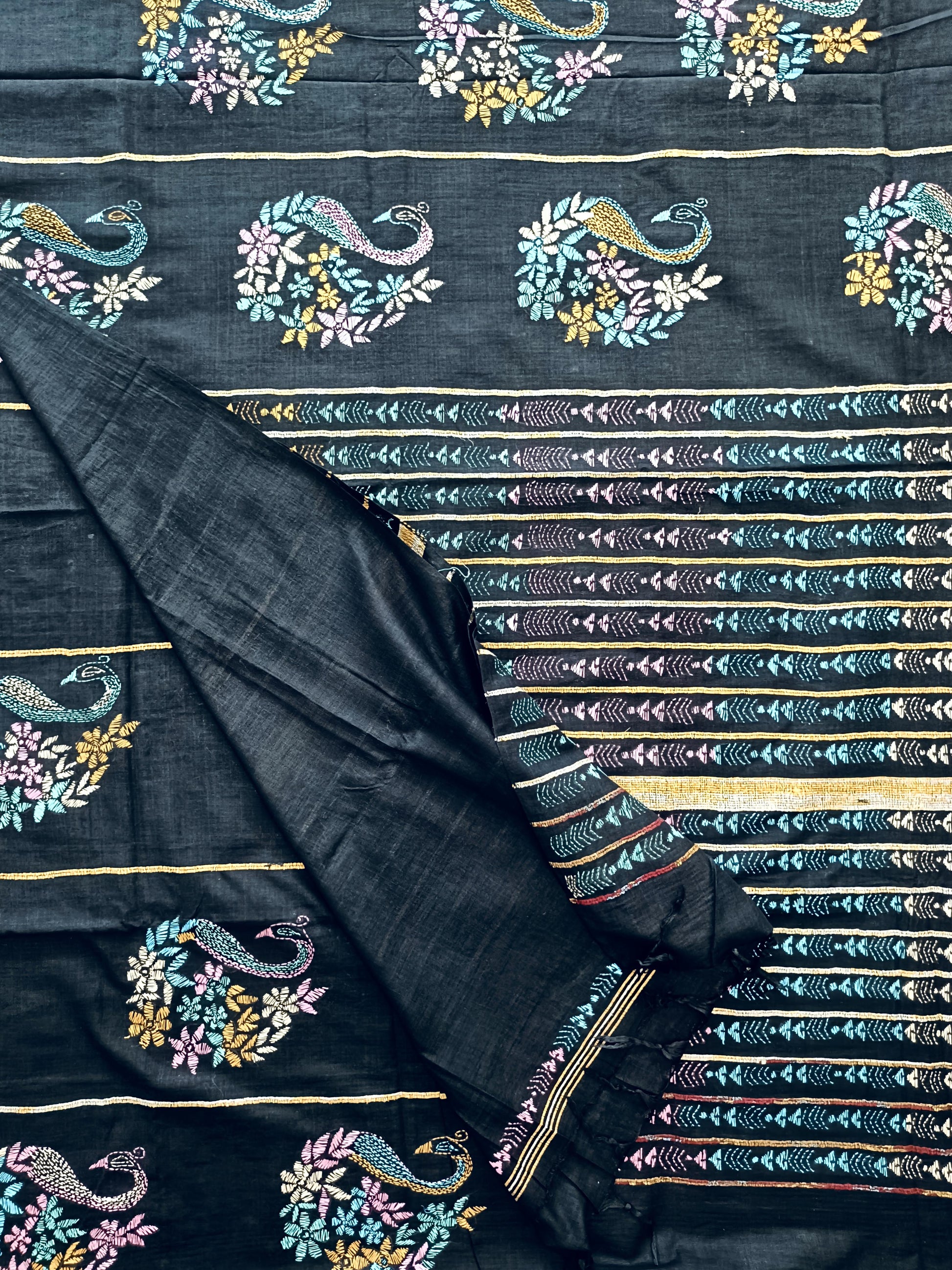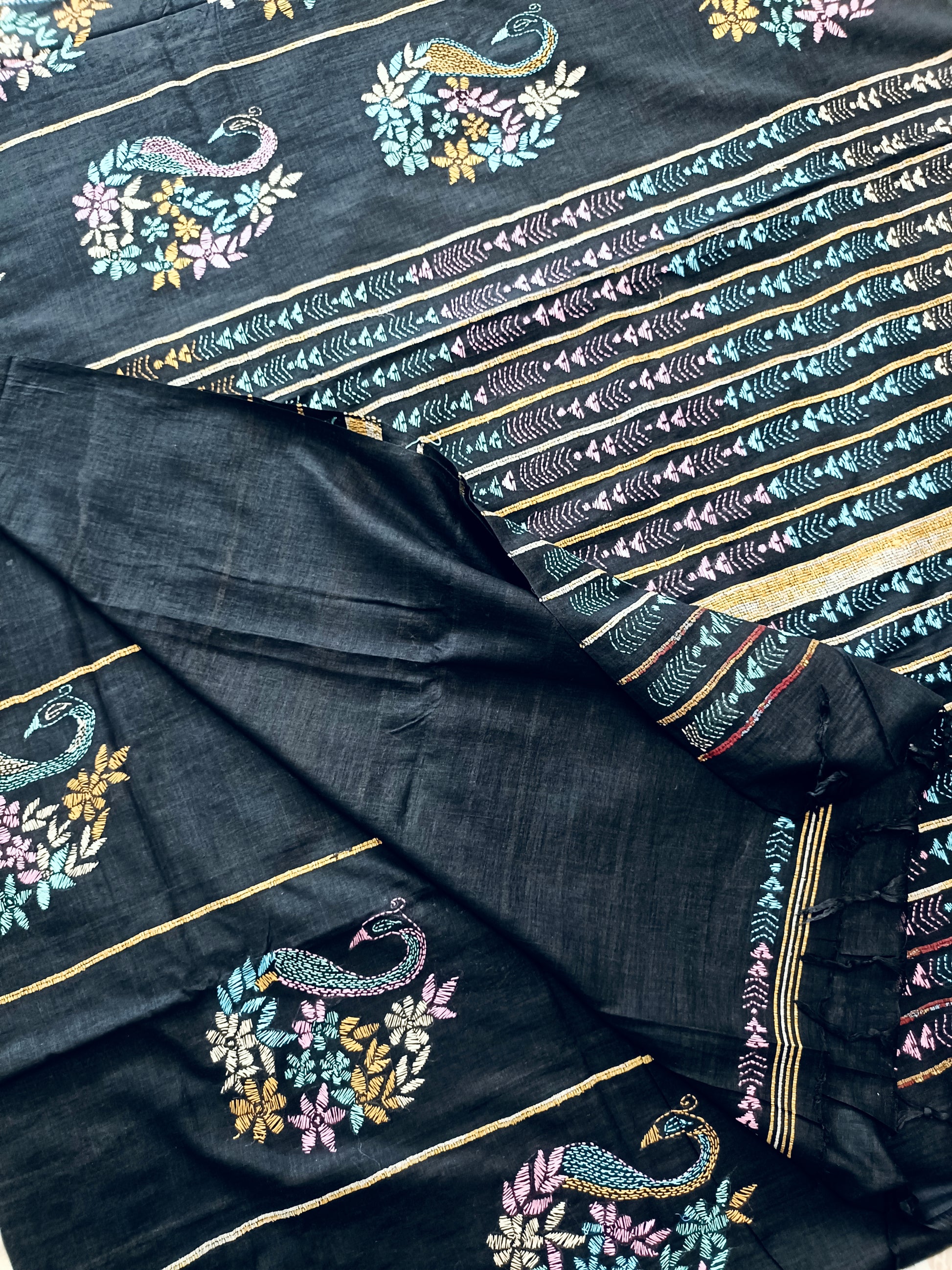 Experience the exquisite craftsmanship of West Bengal with this Pure Handmade Khesh Cotton Saree, adorned with intricate Handmade Kantha Stitch embroidery.