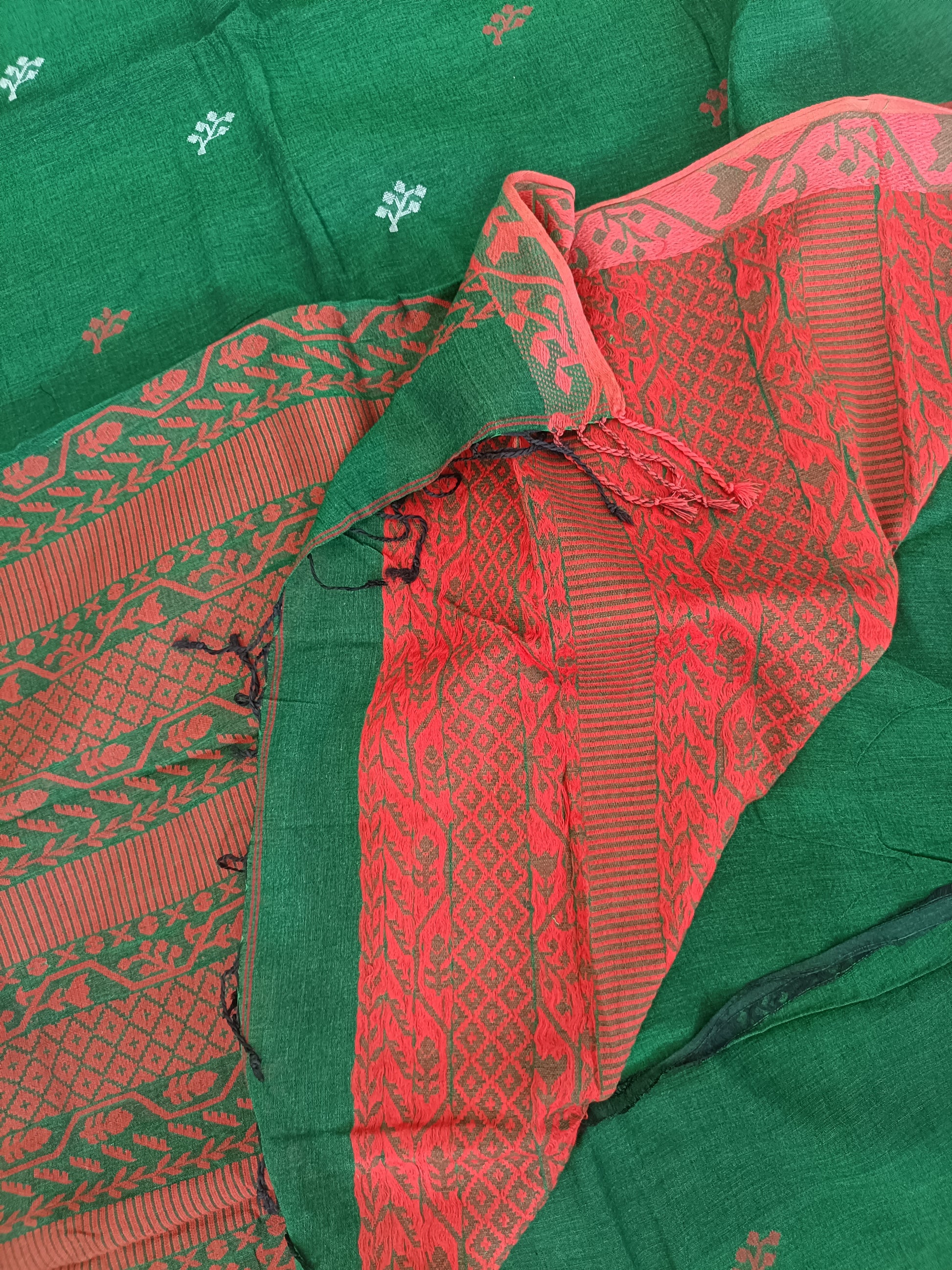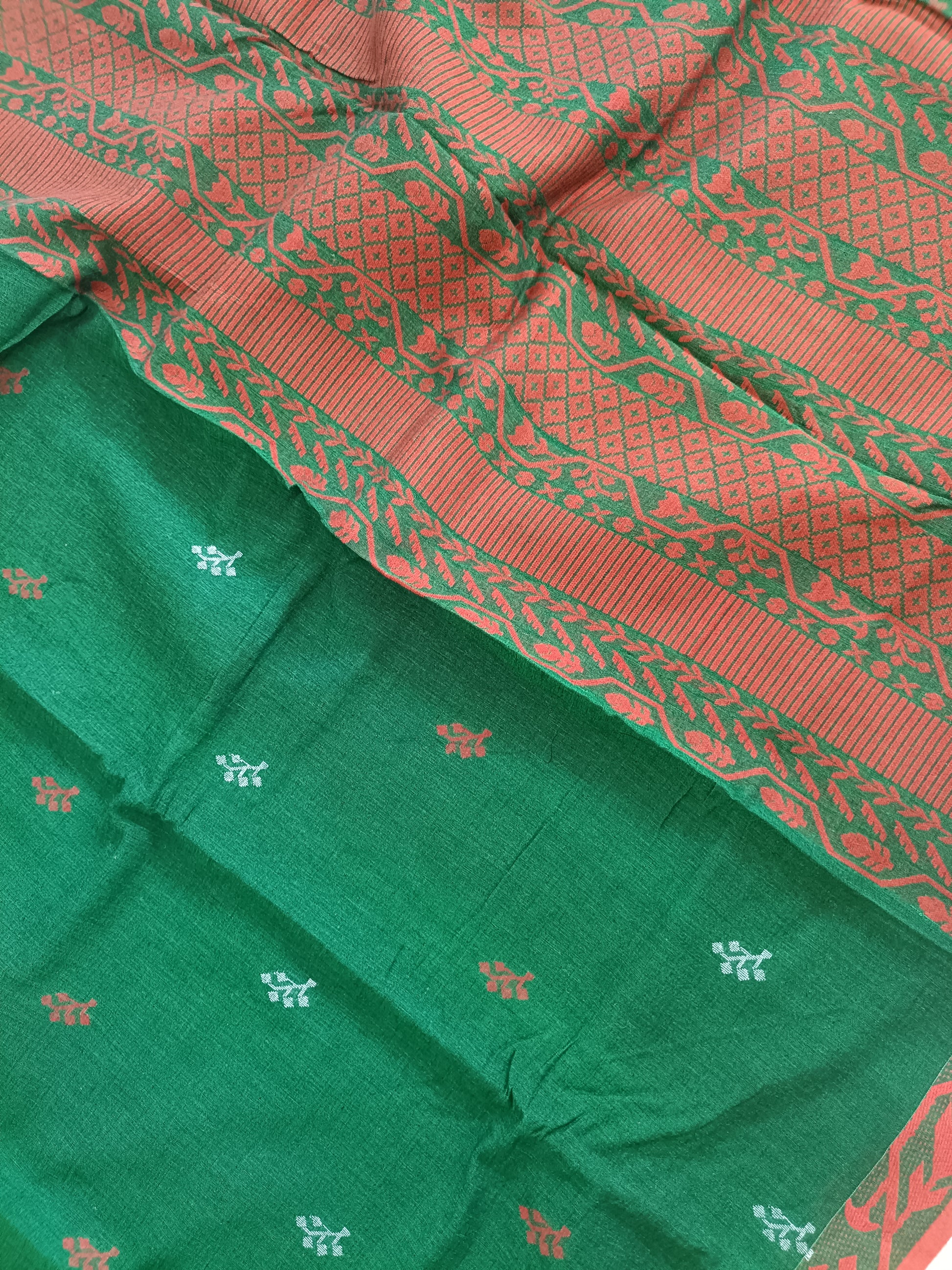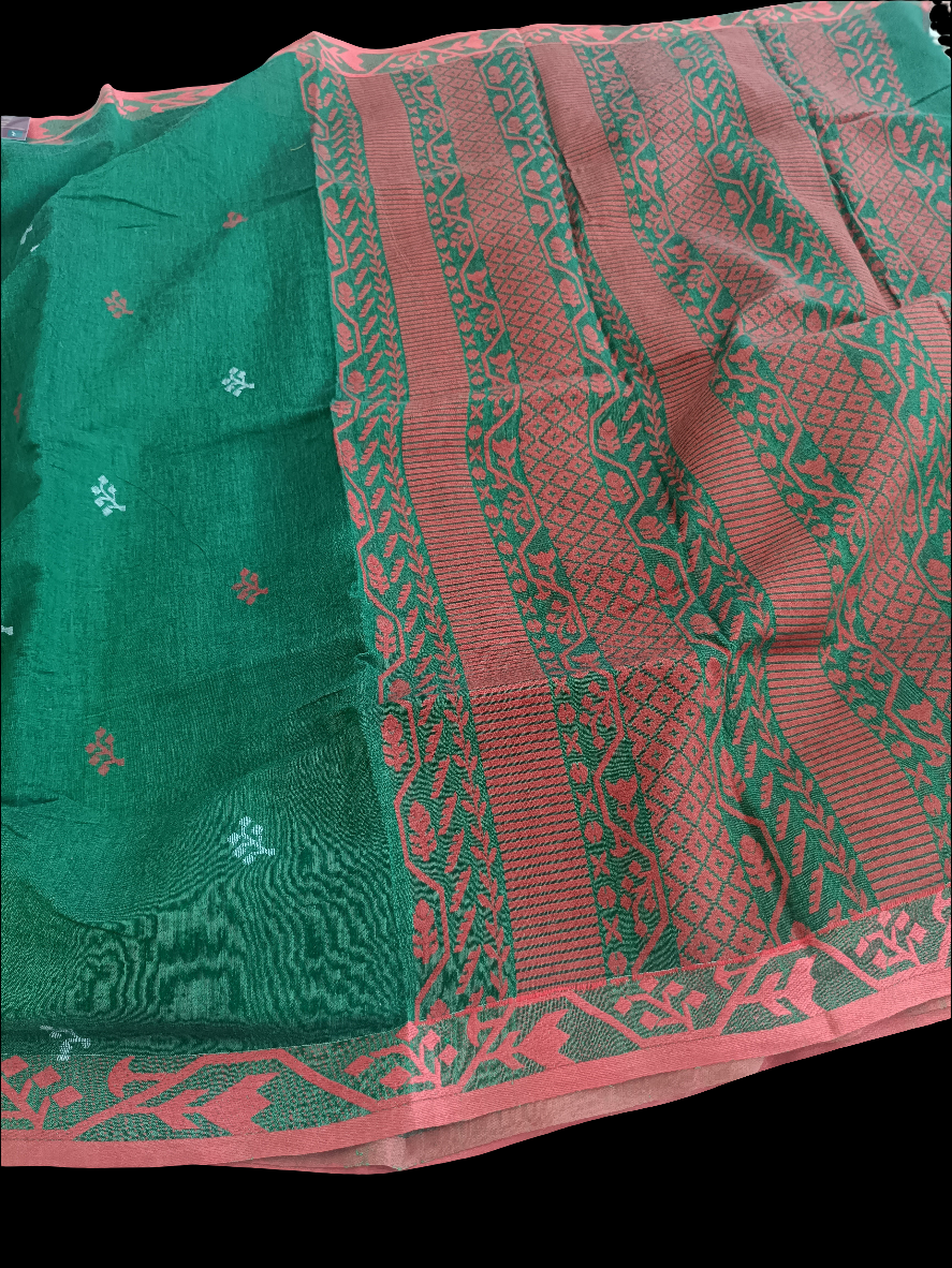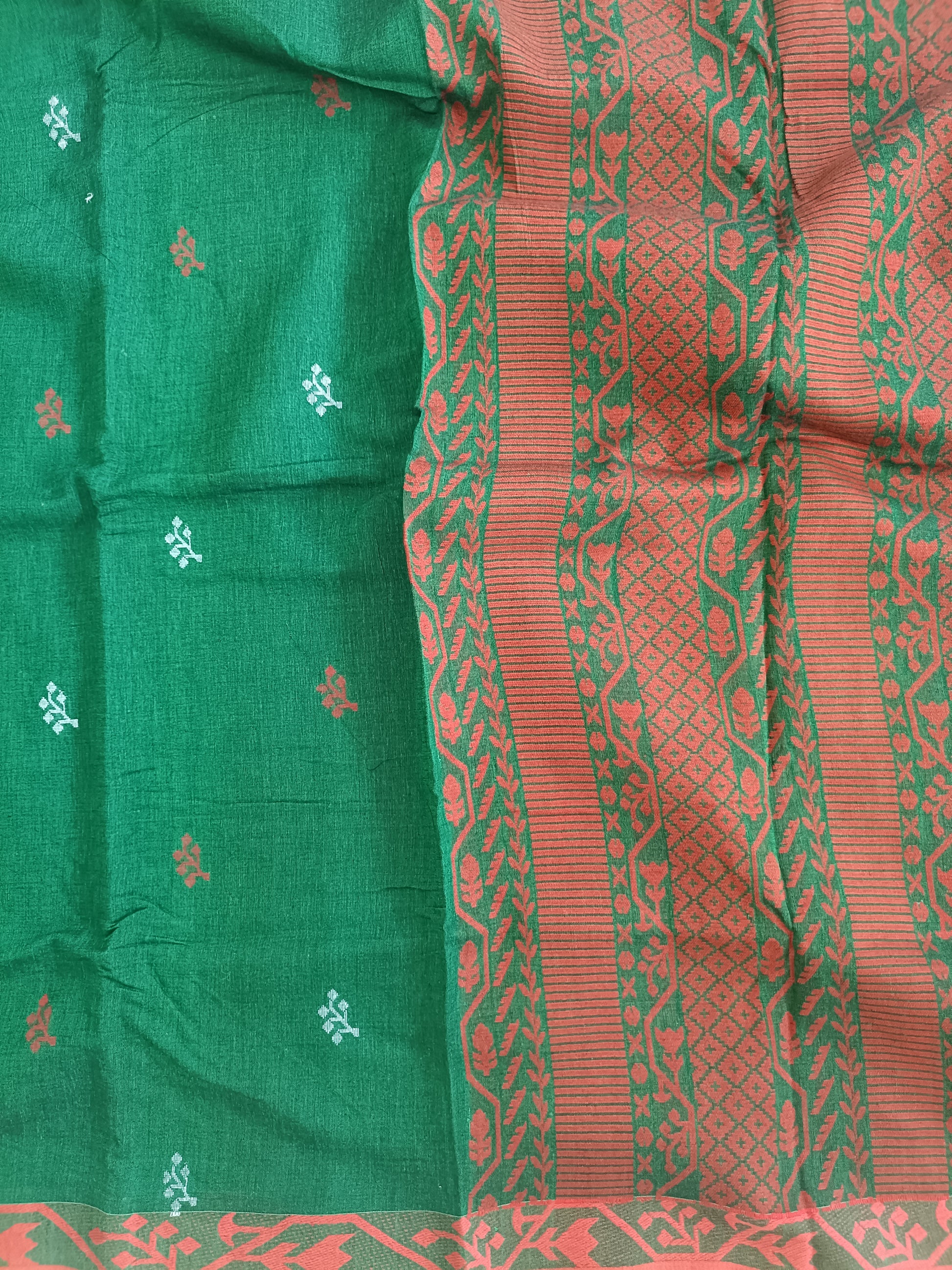 “Woven by hand, these Bengal cottons breathe the rhythm of tradition. Draped in soft hues and rich colors, they whisper elegance for every festive moment. Blouse running."