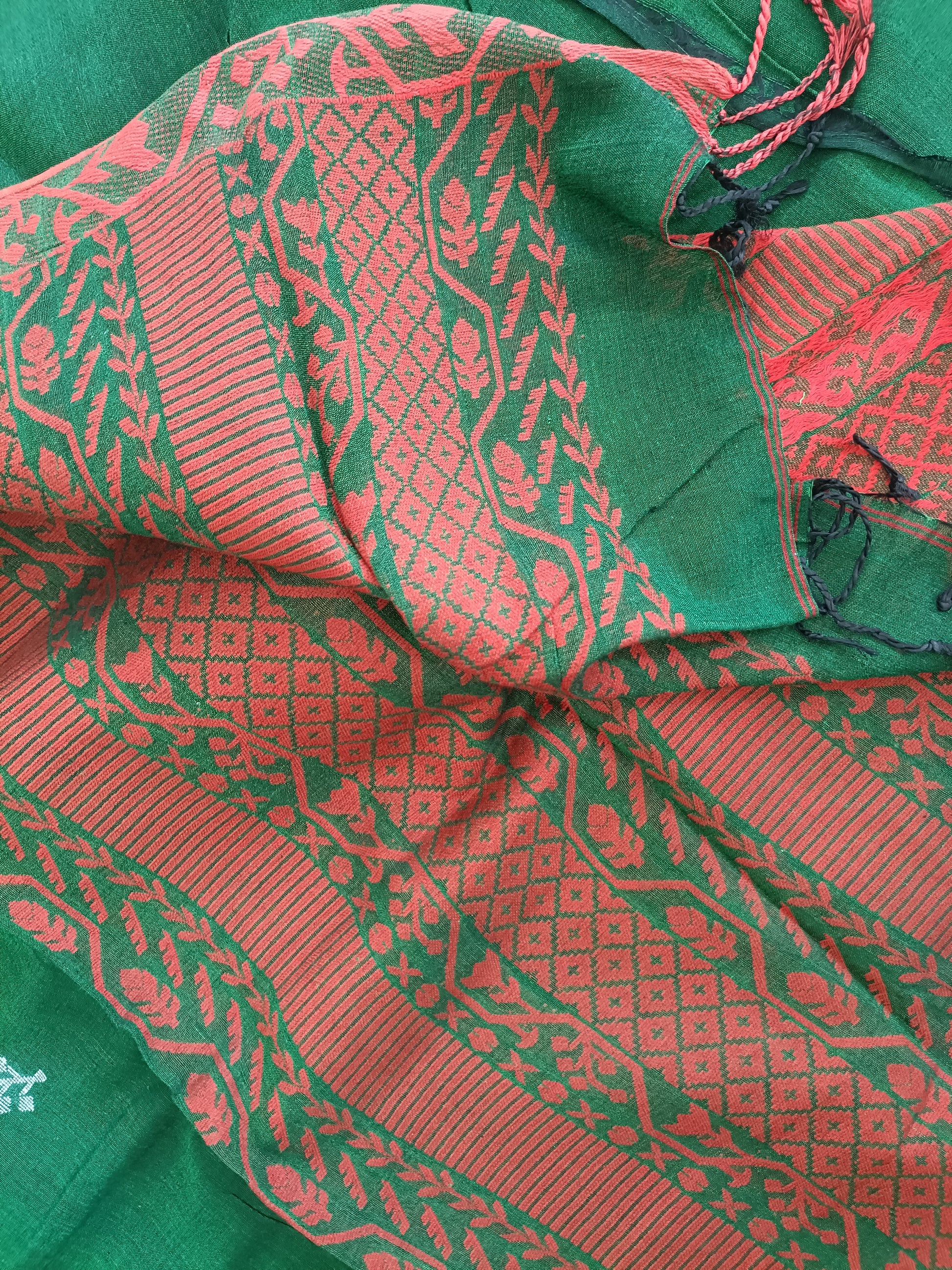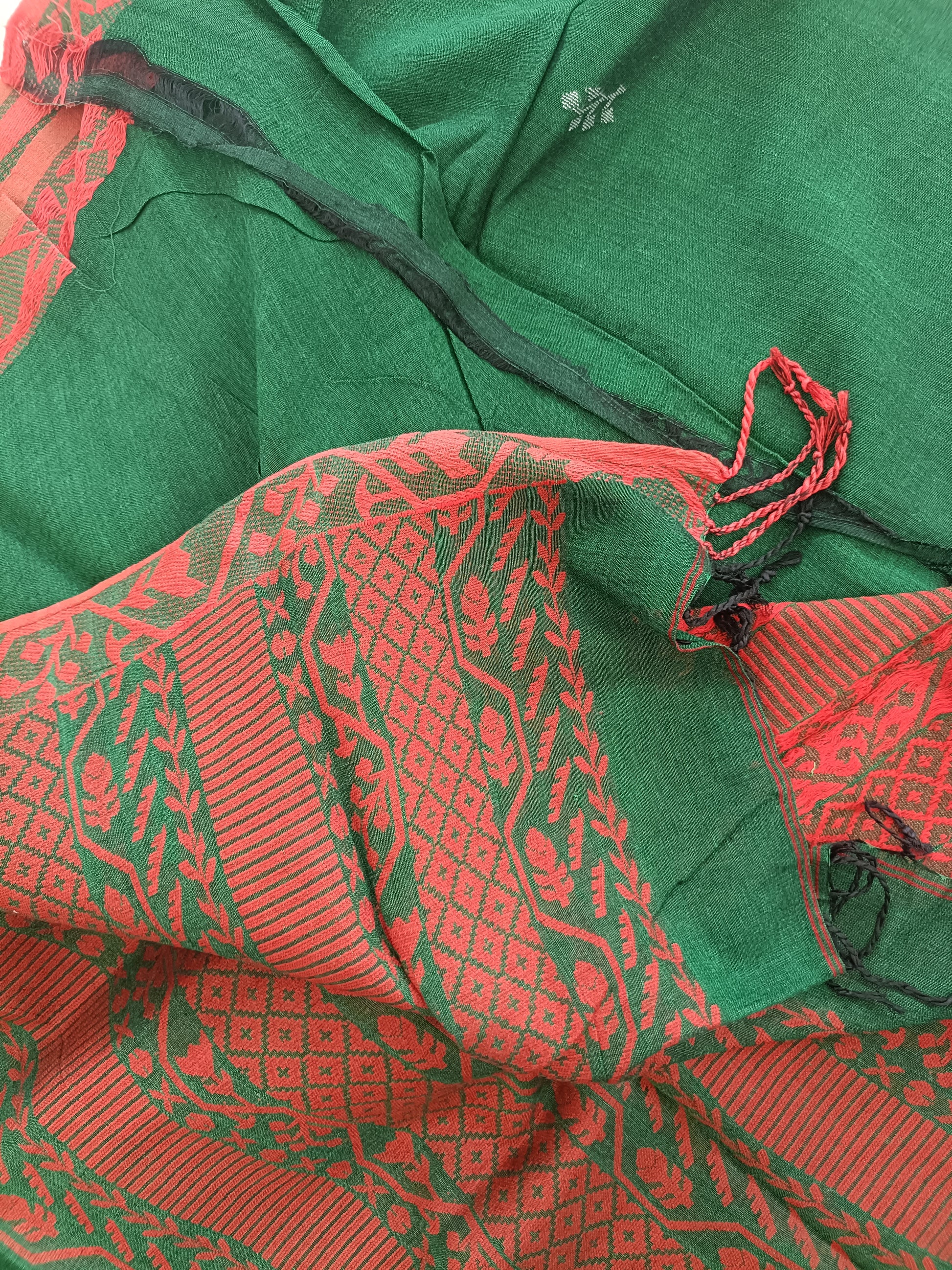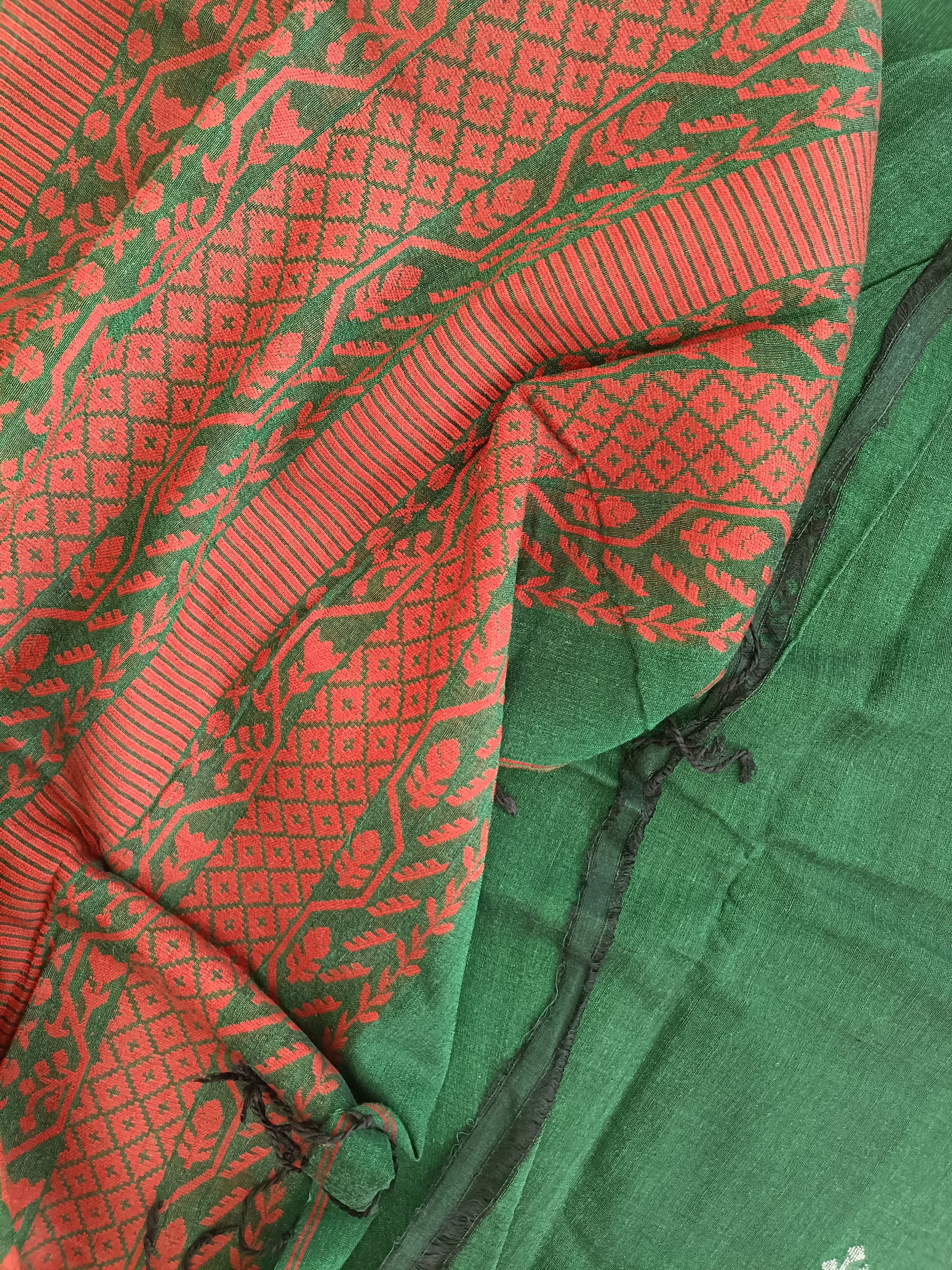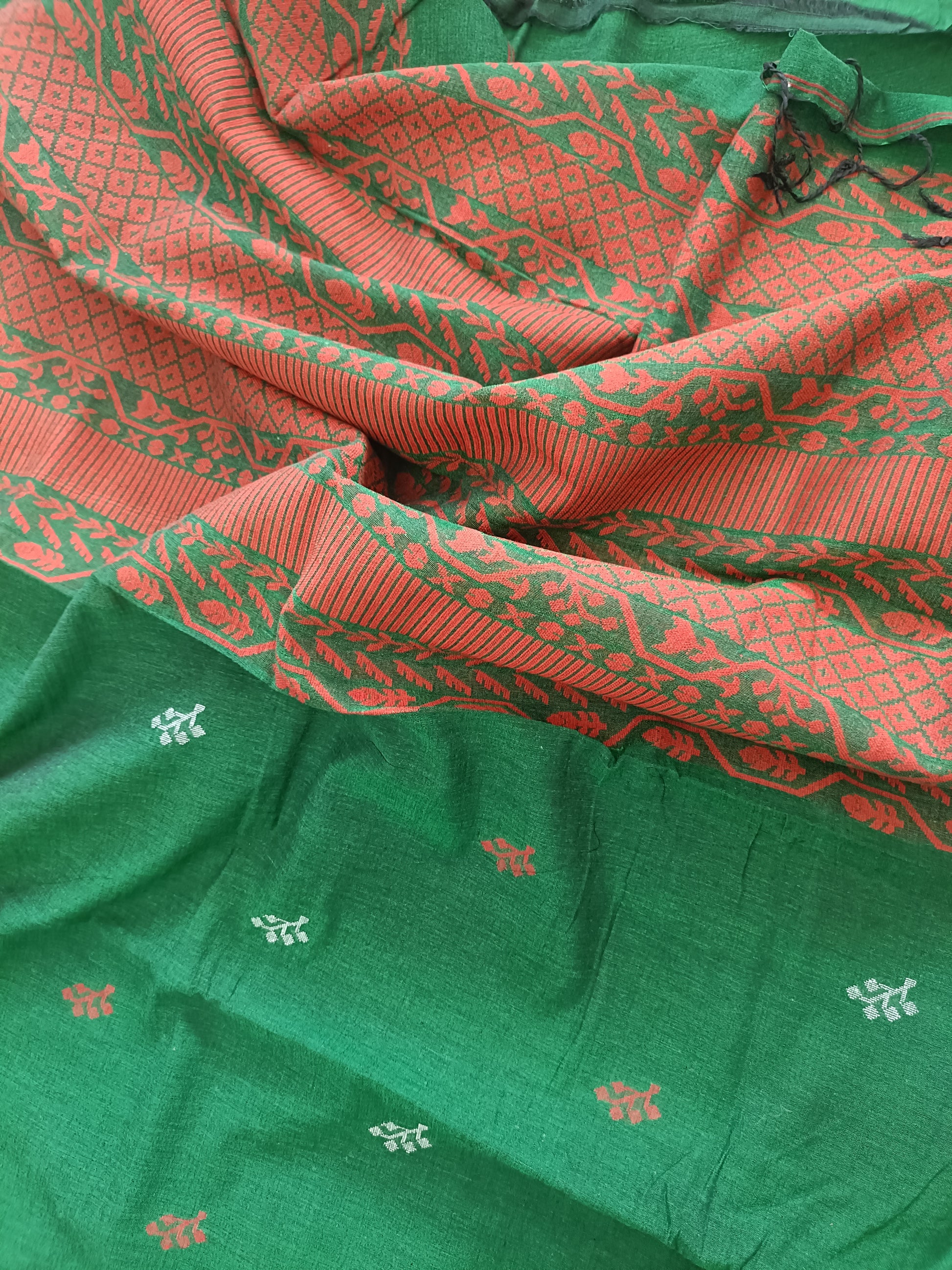 “Woven by hand, these Bengal cottons breathe the rhythm of tradition. Draped in soft hues and rich colors, they whisper elegance for every festive moment. Blouse running."