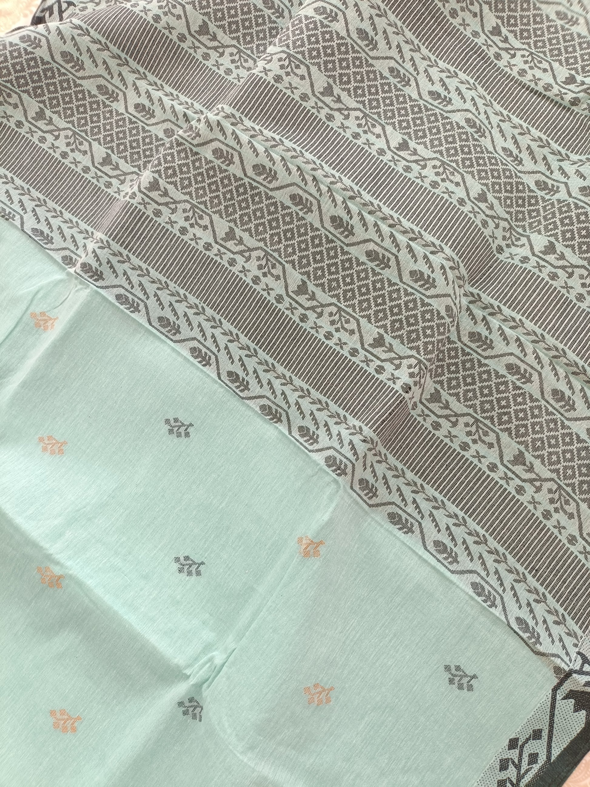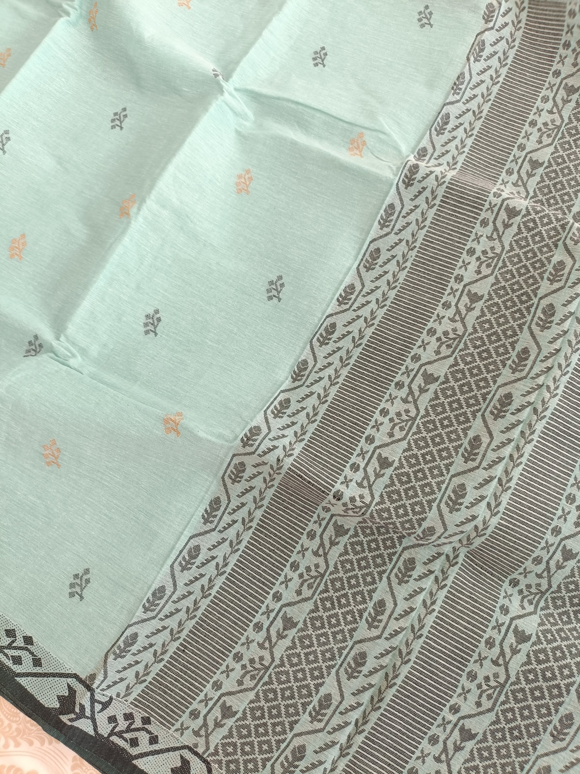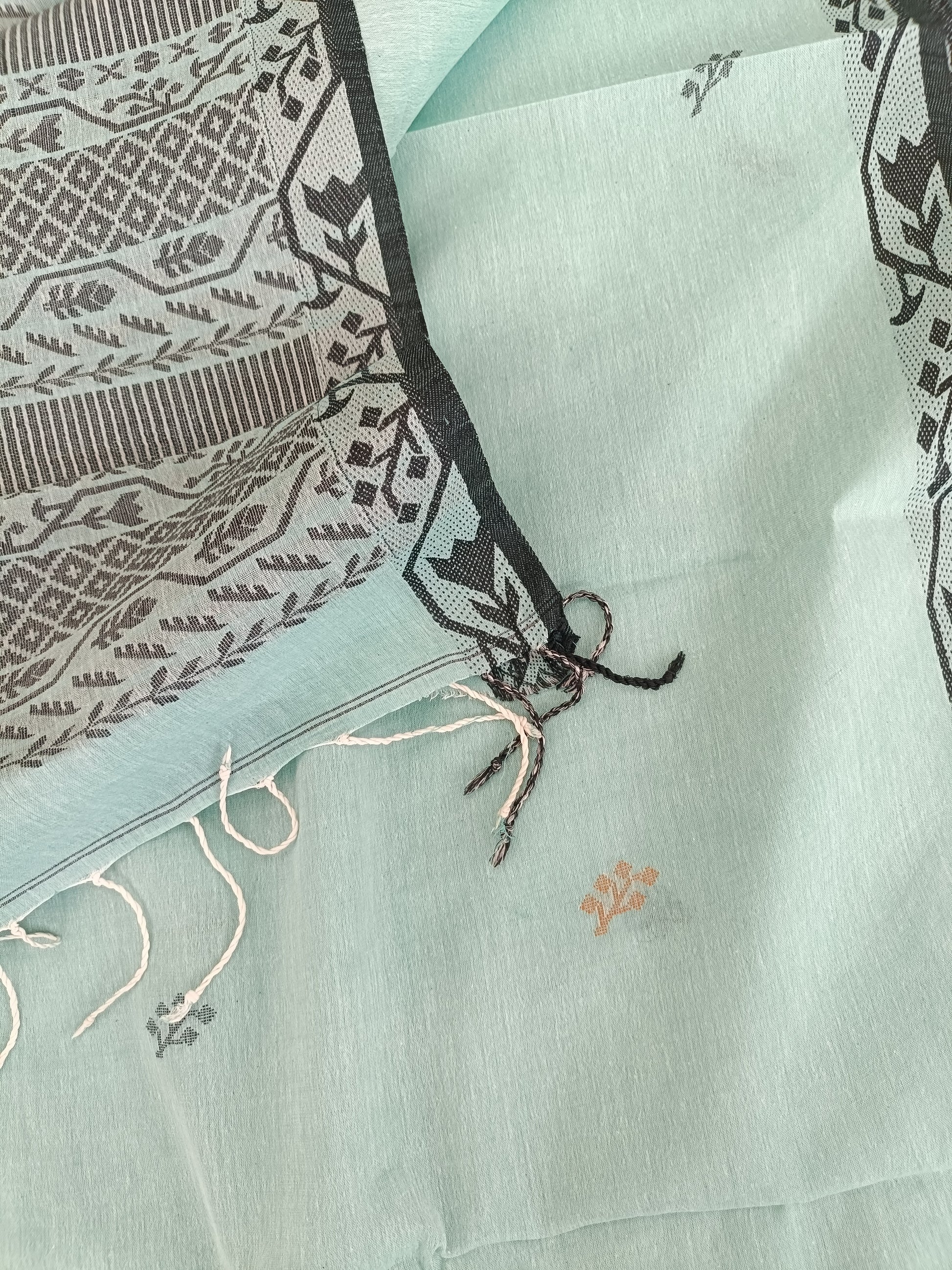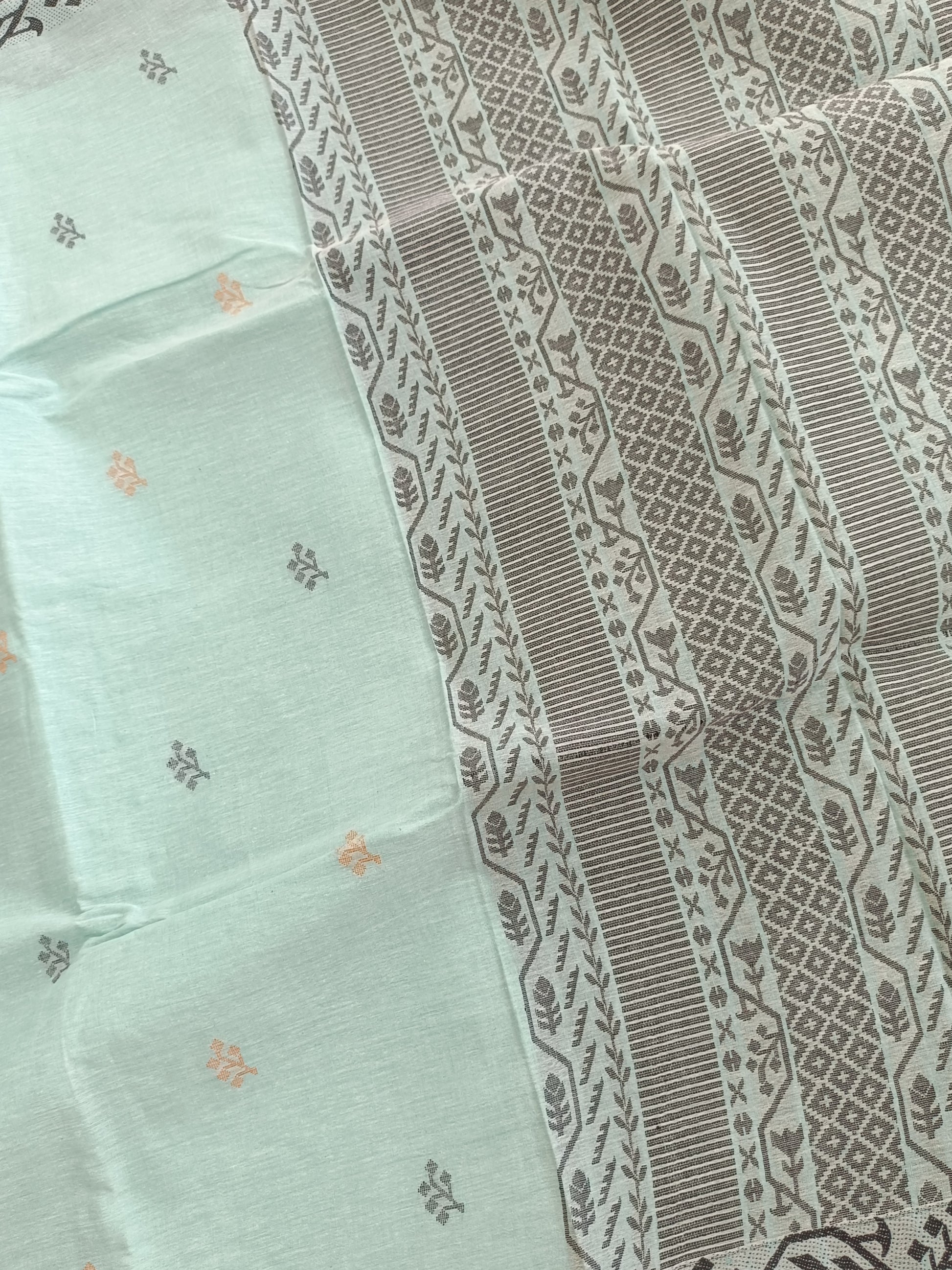 “Woven by hand, these Bengal cottons breathe the rhythm of tradition. Draped in soft hues and rich colors, they whisper elegance for every festive moment. Blouse running."