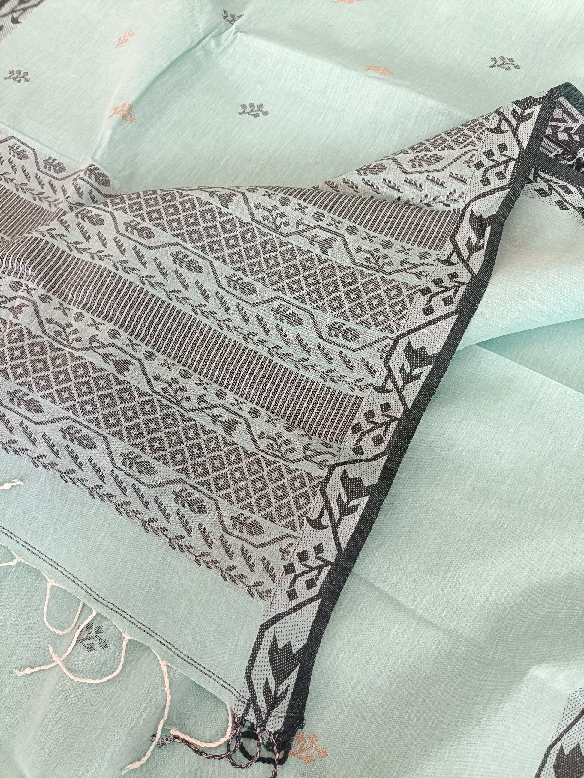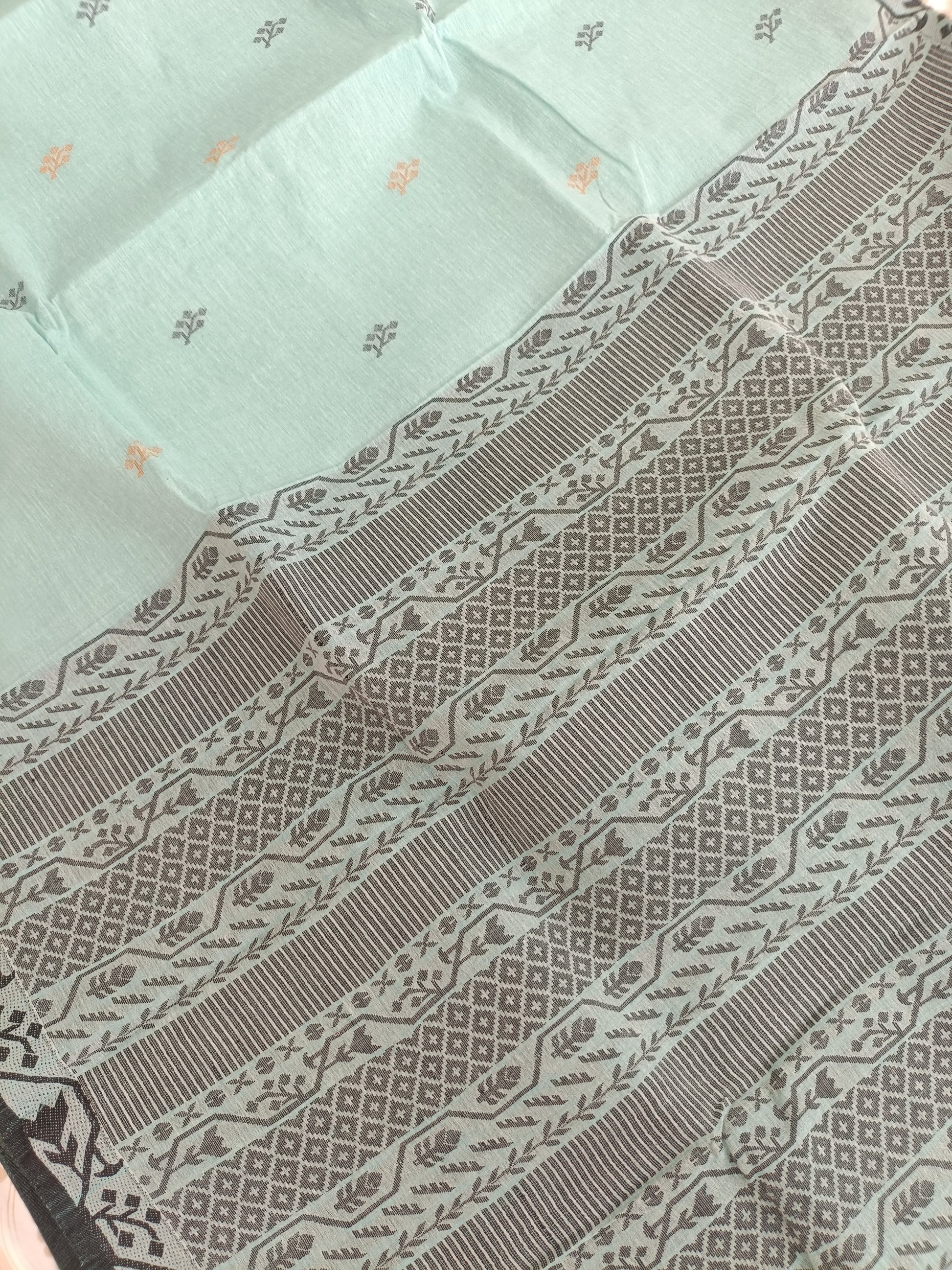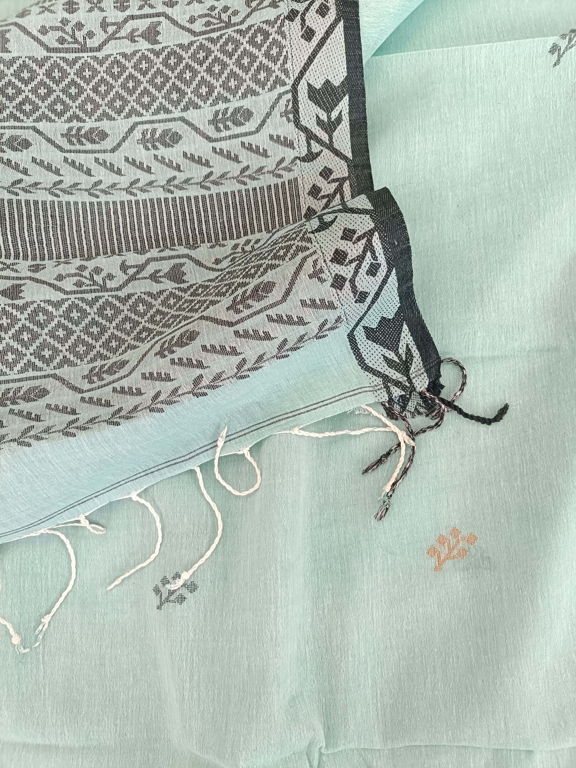 “Woven by hand, these Bengal cottons breathe the rhythm of tradition. Draped in soft hues and rich colors, they whisper elegance for every festive moment. Blouse running."