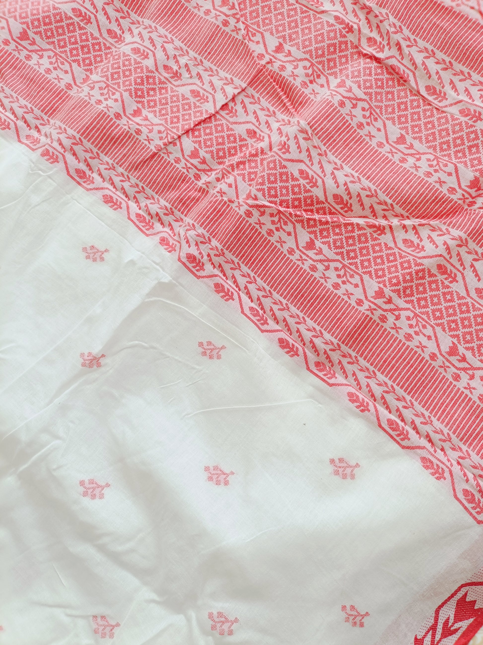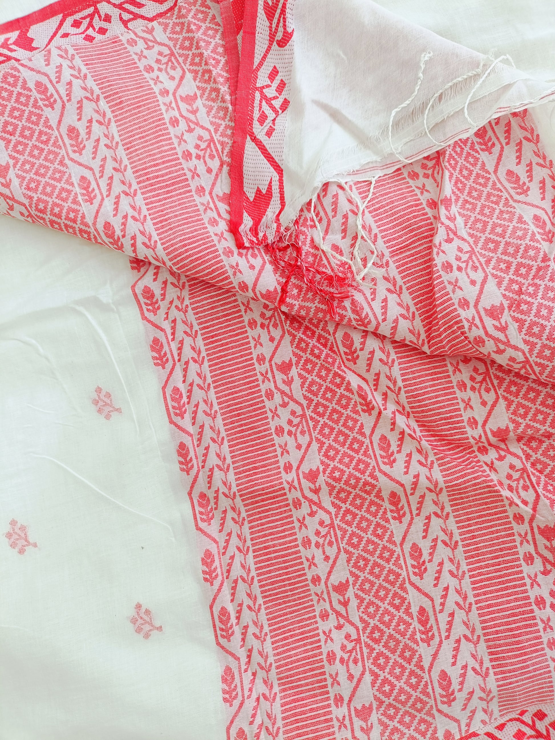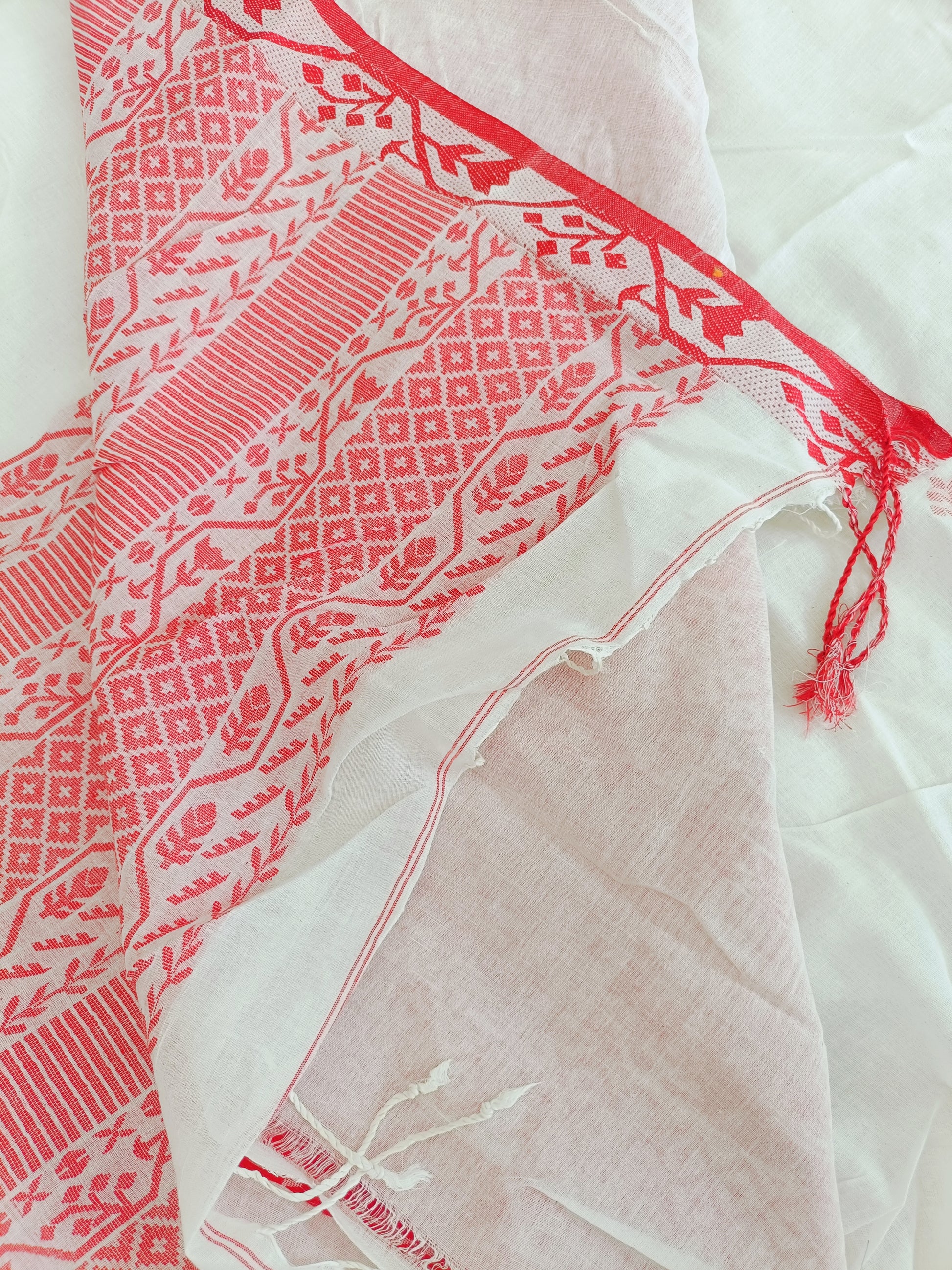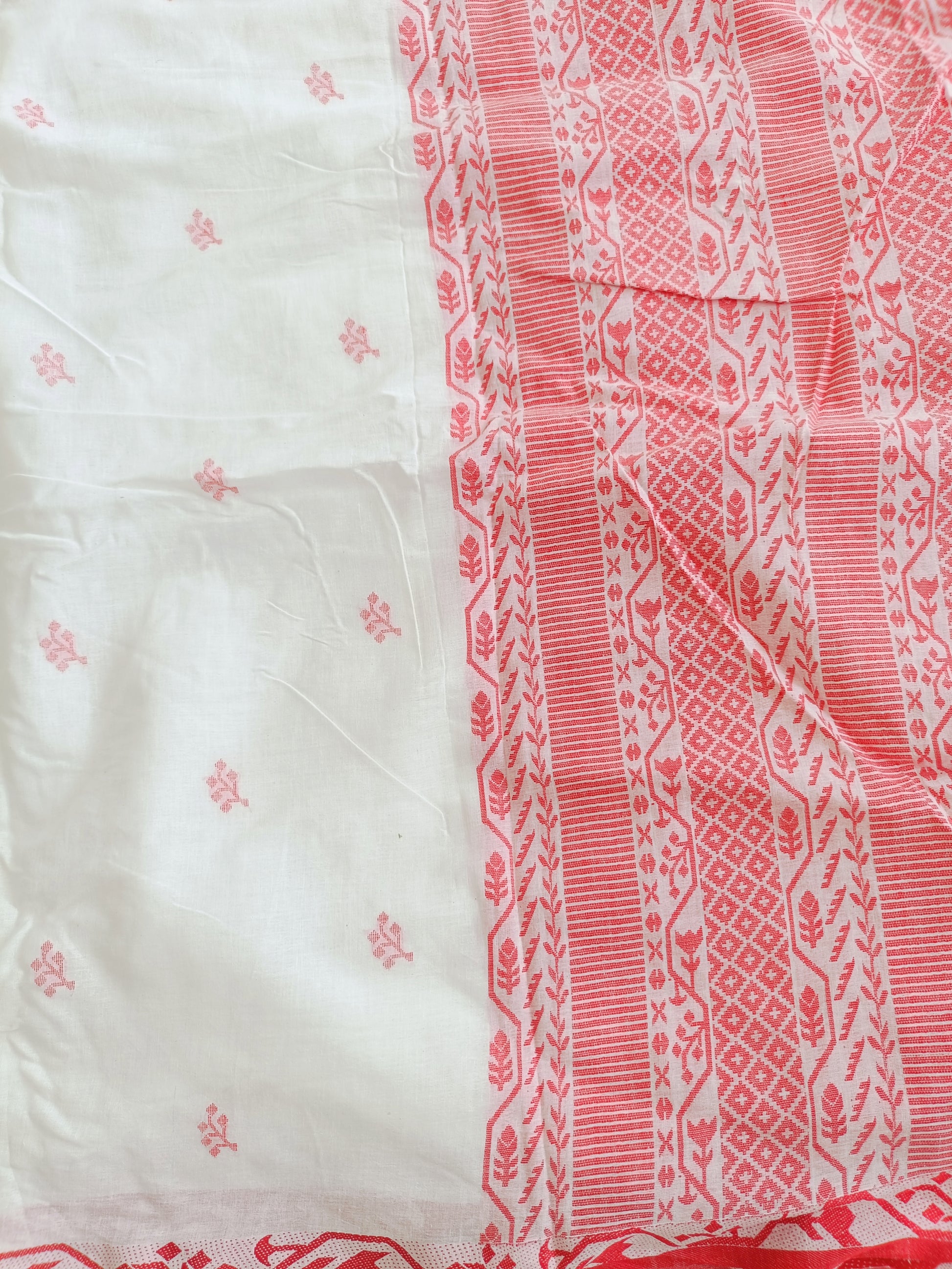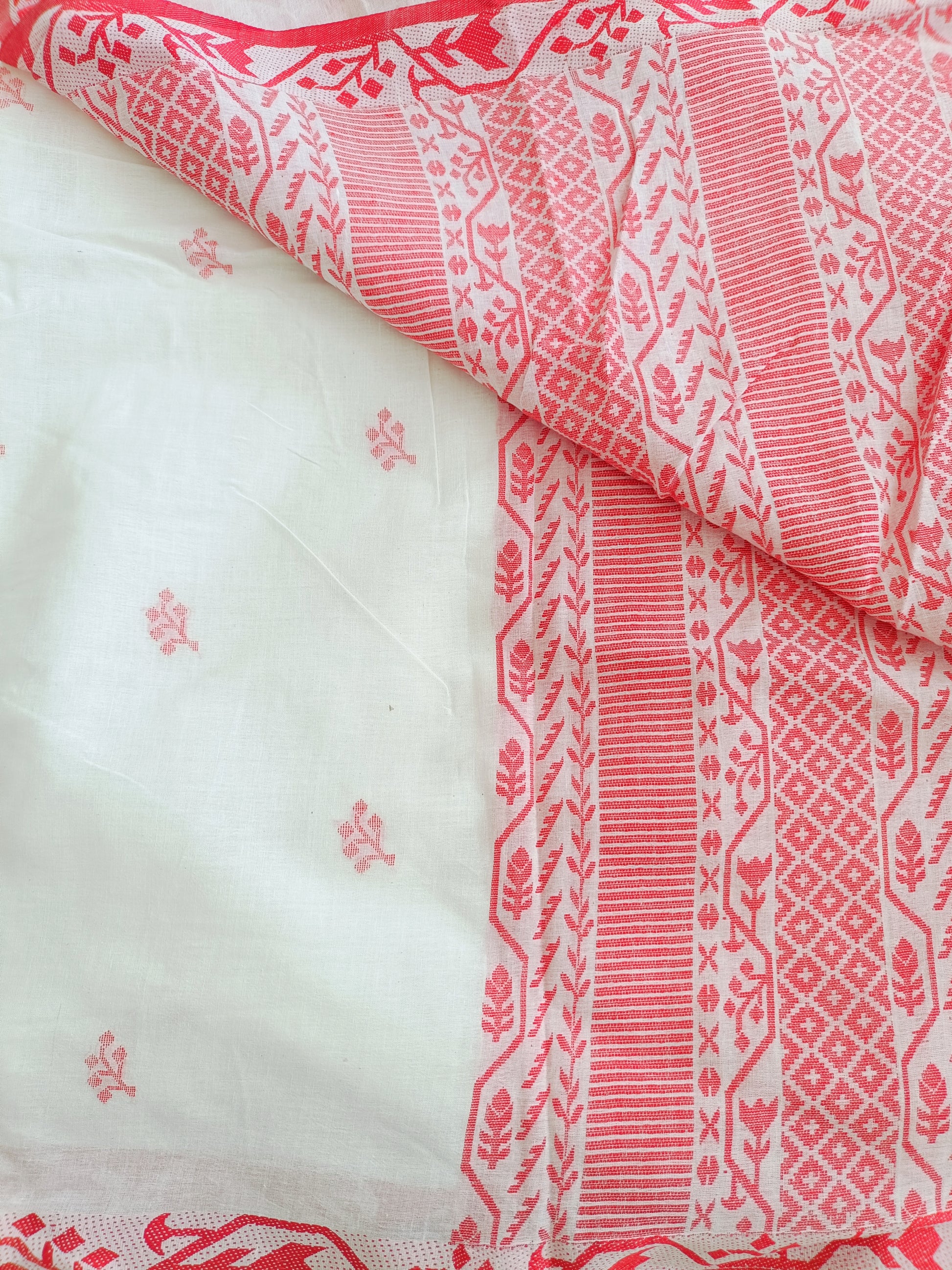 “Woven by hand, these Bengal cottons breathe the rhythm of tradition. Draped in soft hues and rich colors, they whisper elegance for every festive moment. Blouse running."