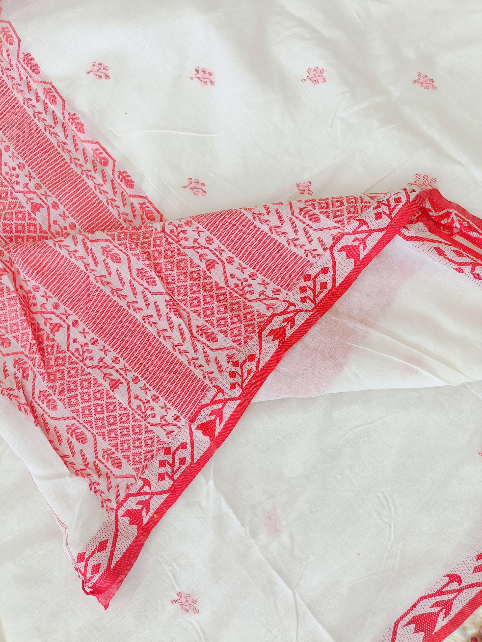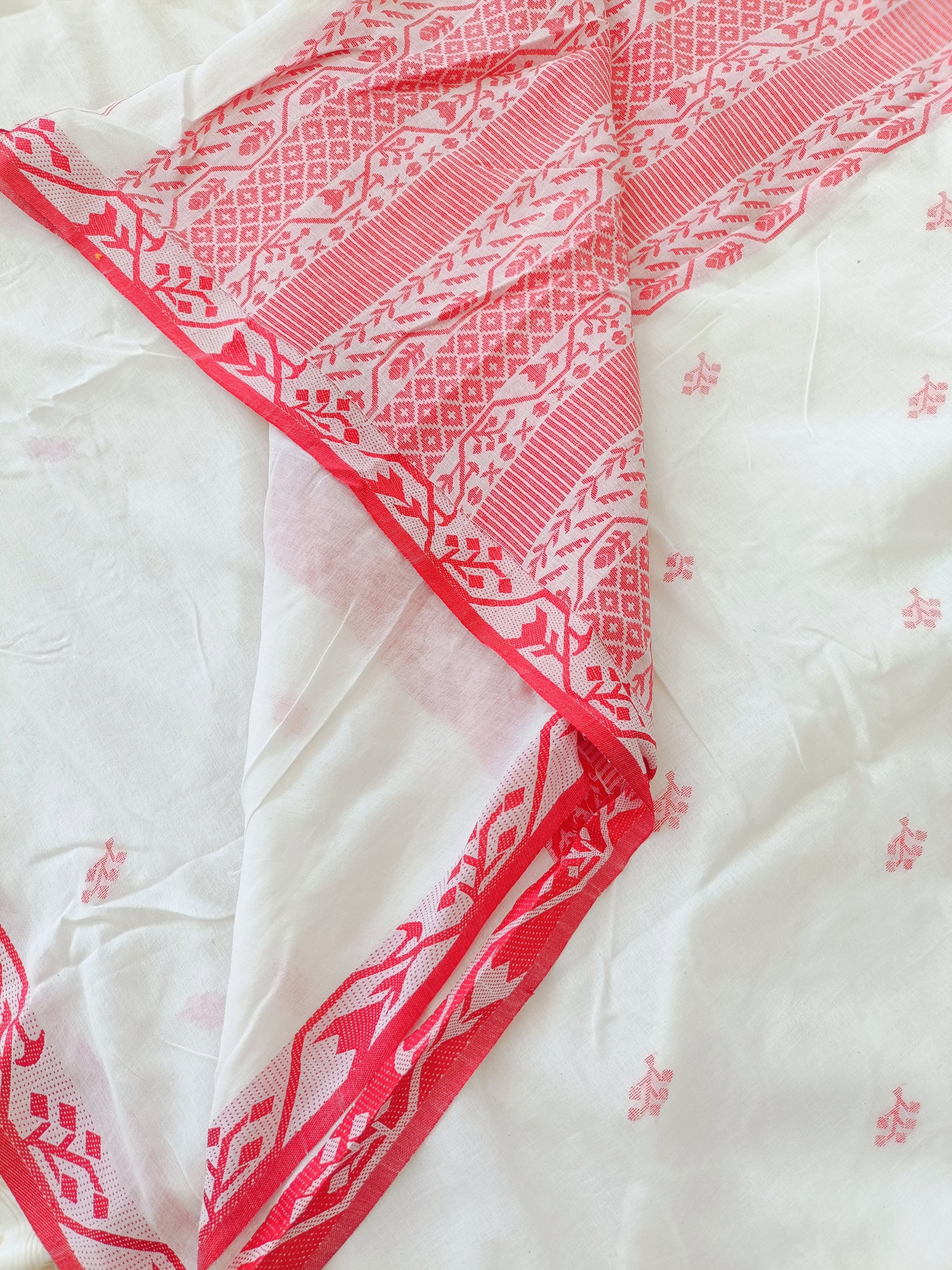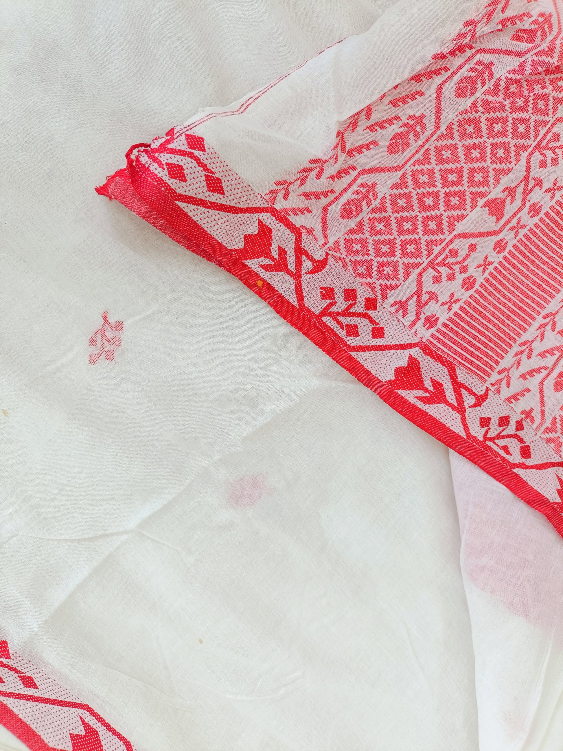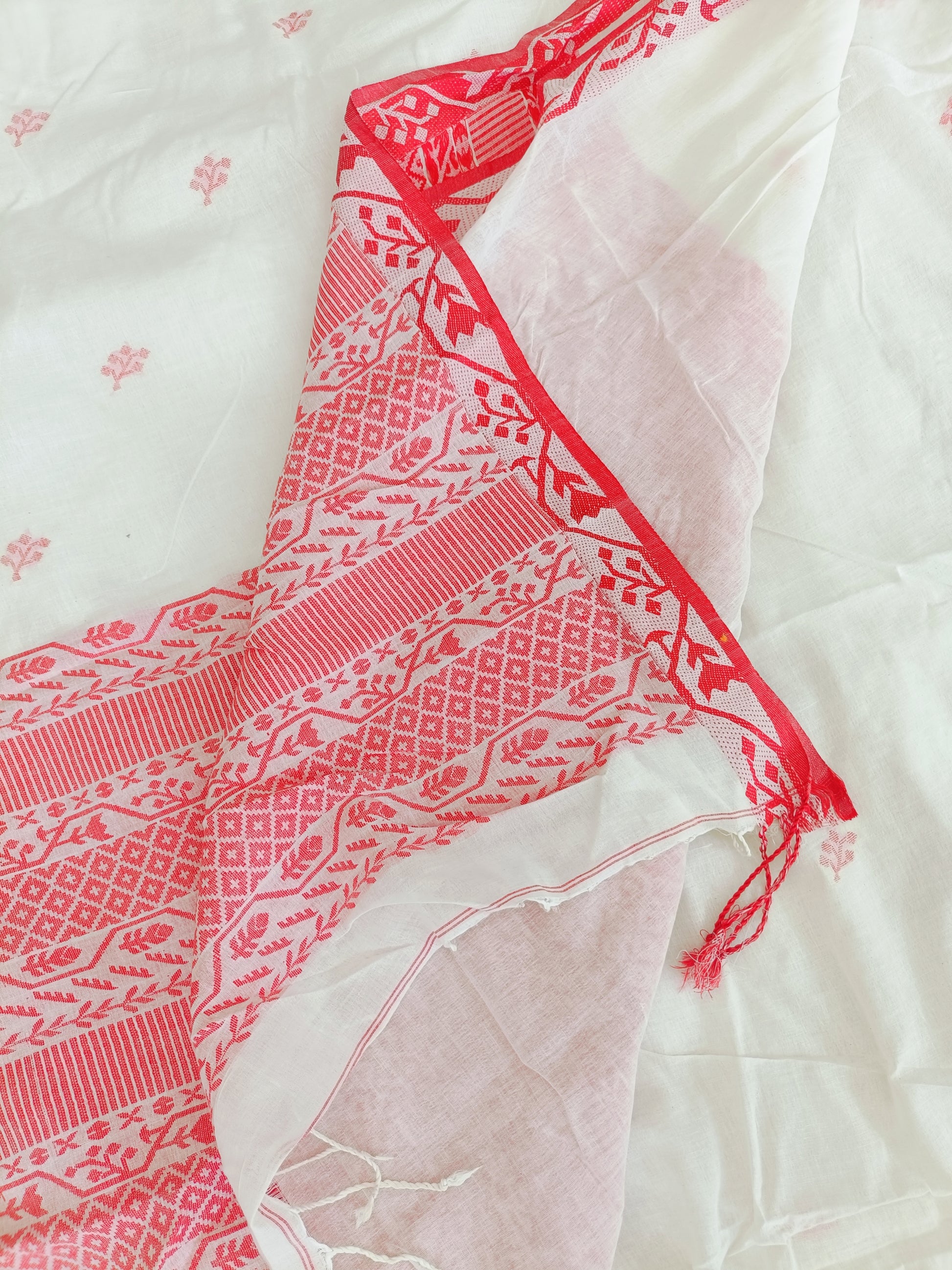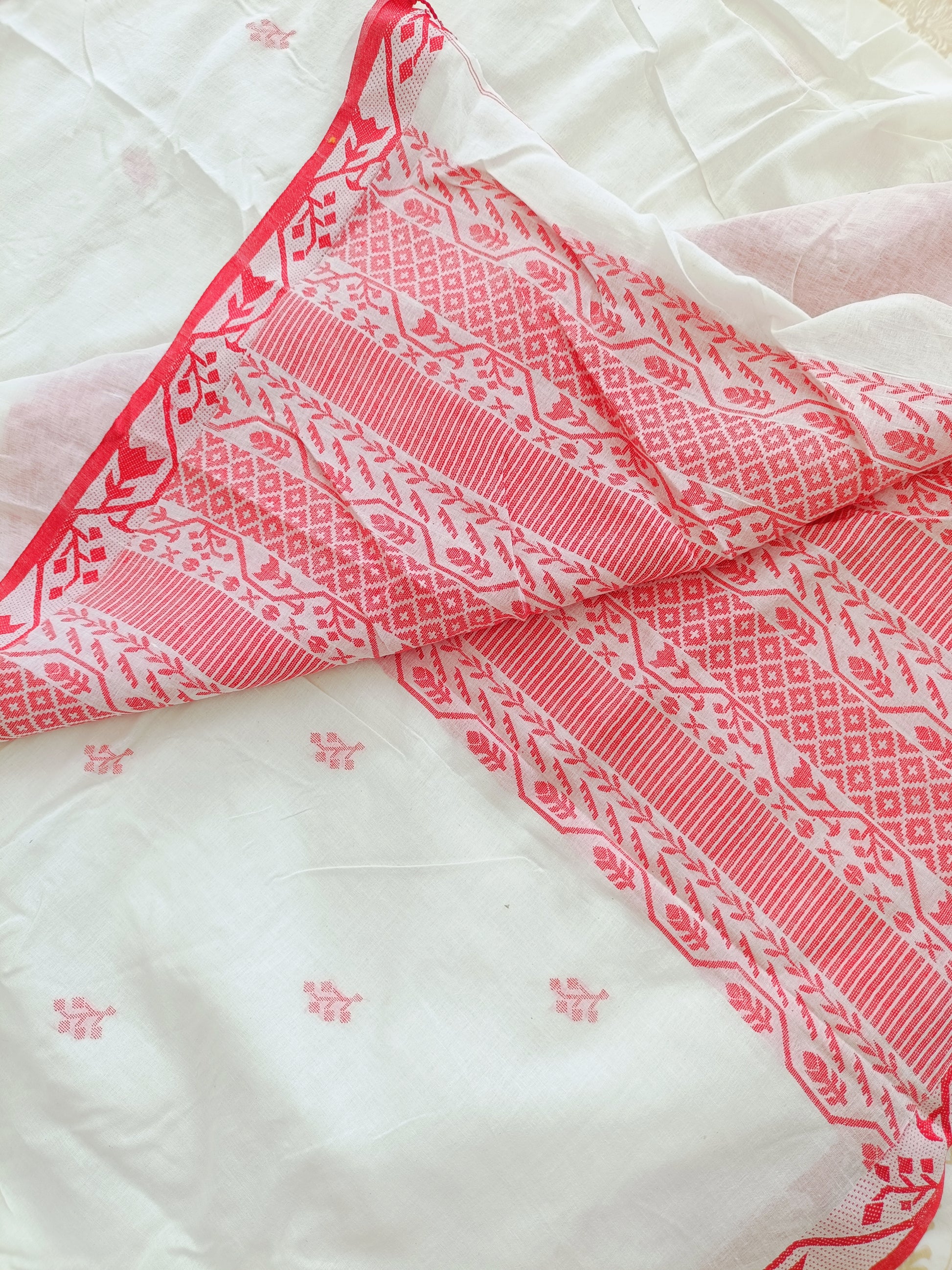 “Woven by hand, these Bengal cottons breathe the rhythm of tradition. Draped in soft hues and rich colors, they whisper elegance for every festive moment. Blouse running."