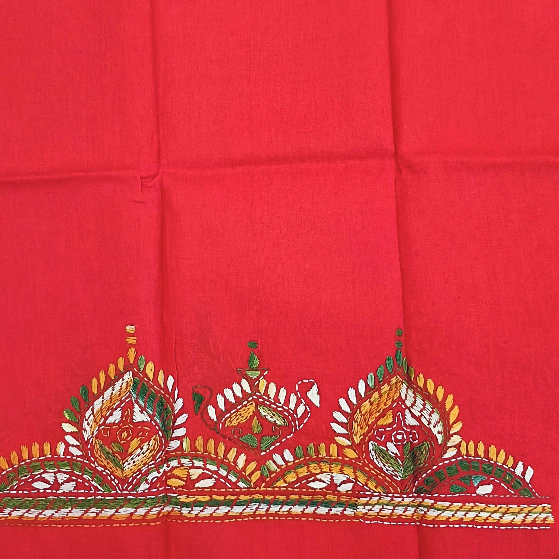 Handmade Kantha stitch on pure cotton, featuring embroidery on one half and plain fabric on the other—perfect for saree blouses, patchwork, and creative DIY designs.