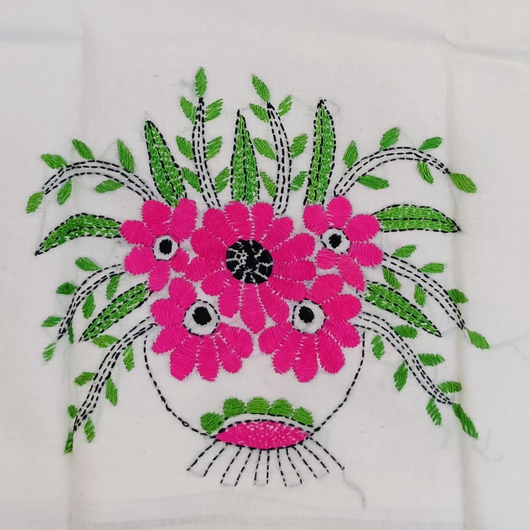 Handmade Kantha stitch on pure cotton, featuring embroidery on one half and plain fabric on the other—perfect for saree blouses, patchwork, and creative DIY designs.