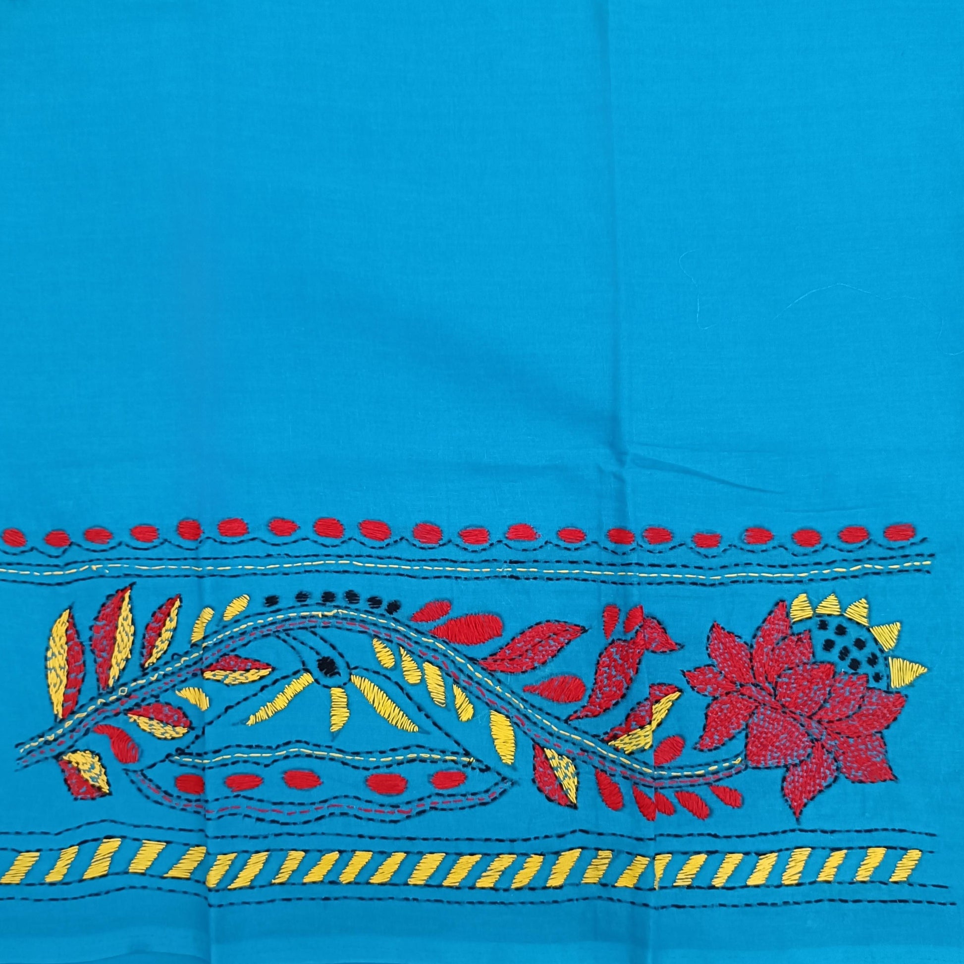 Handmade Kantha stitch on pure cotton, featuring embroidery on one half and plain fabric on the other—perfect for saree blouses, patchwork, and creative DIY designs.