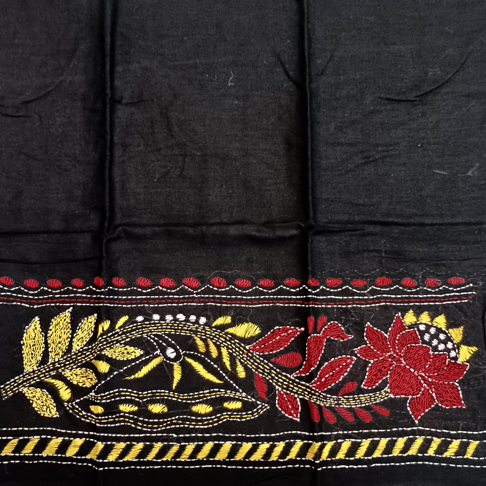 Handmade Kantha stitch on pure cotton, featuring embroidery on one half and plain fabric on the other—perfect for saree blouses, patchwork, and creative DIY designs.