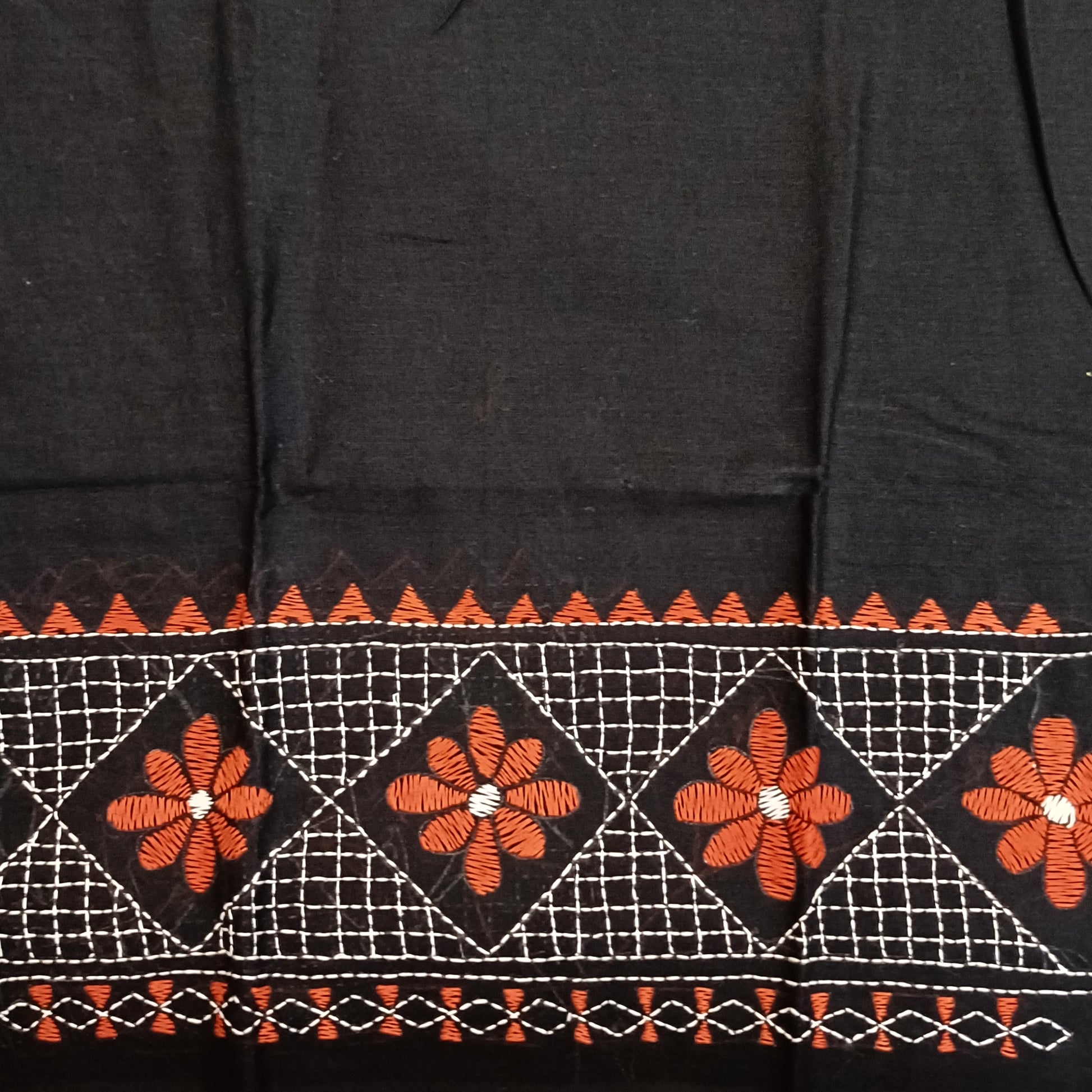 Handmade Kantha stitch on pure cotton, featuring embroidery on one half and plain fabric on the other—perfect for saree blouses, patchwork, and creative DIY designs.